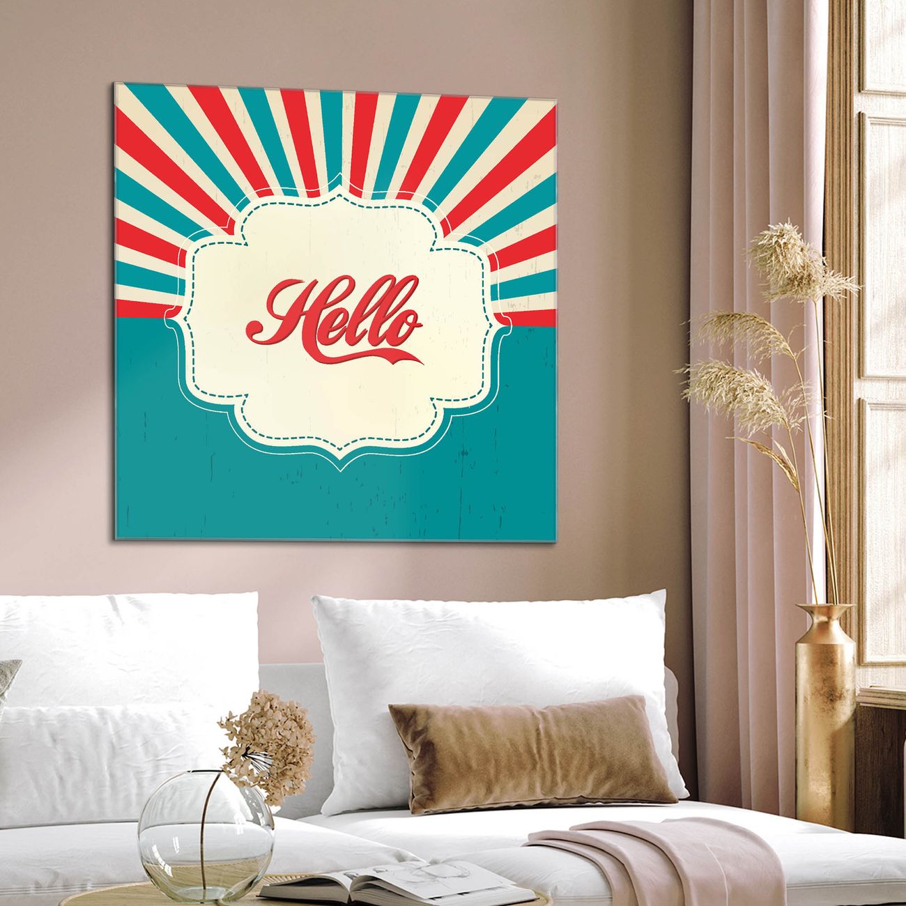Quadratisches Wandbild aus Glas Hello