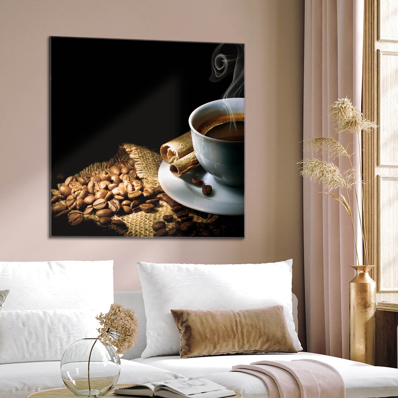 Quadratisches Wandbild aus Glas Hot Coffee