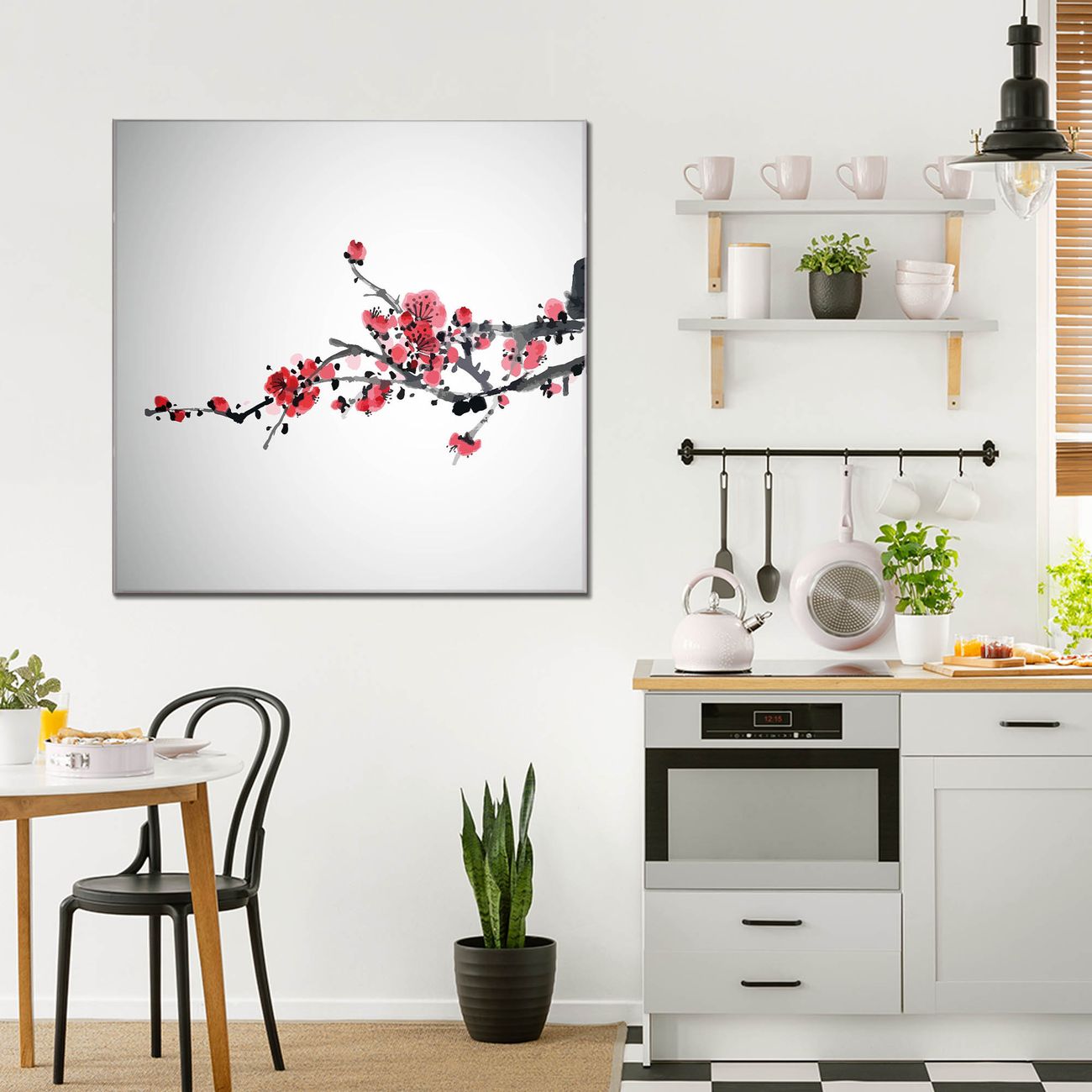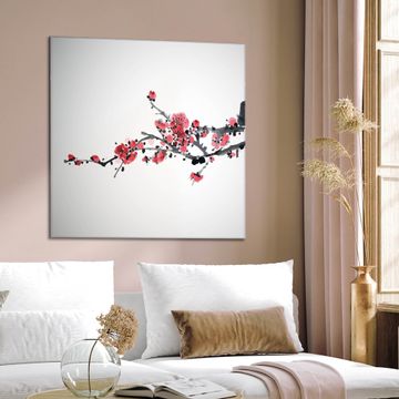 Quadratisches Wandbild aus Glas Japanische Blüten 2