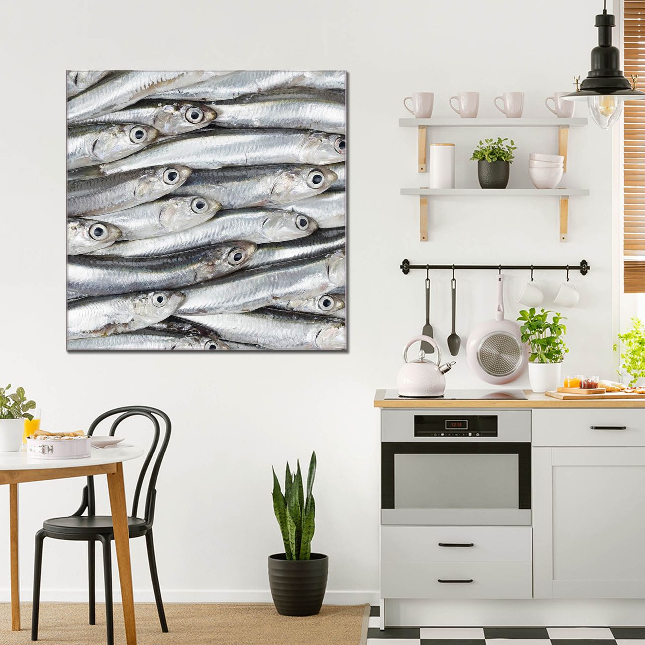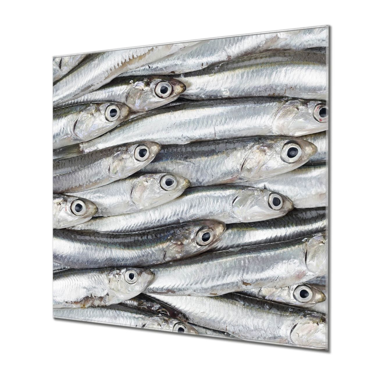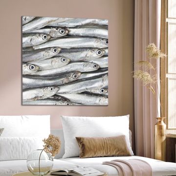 Quadratisches Wandbild aus Glas Sardinen