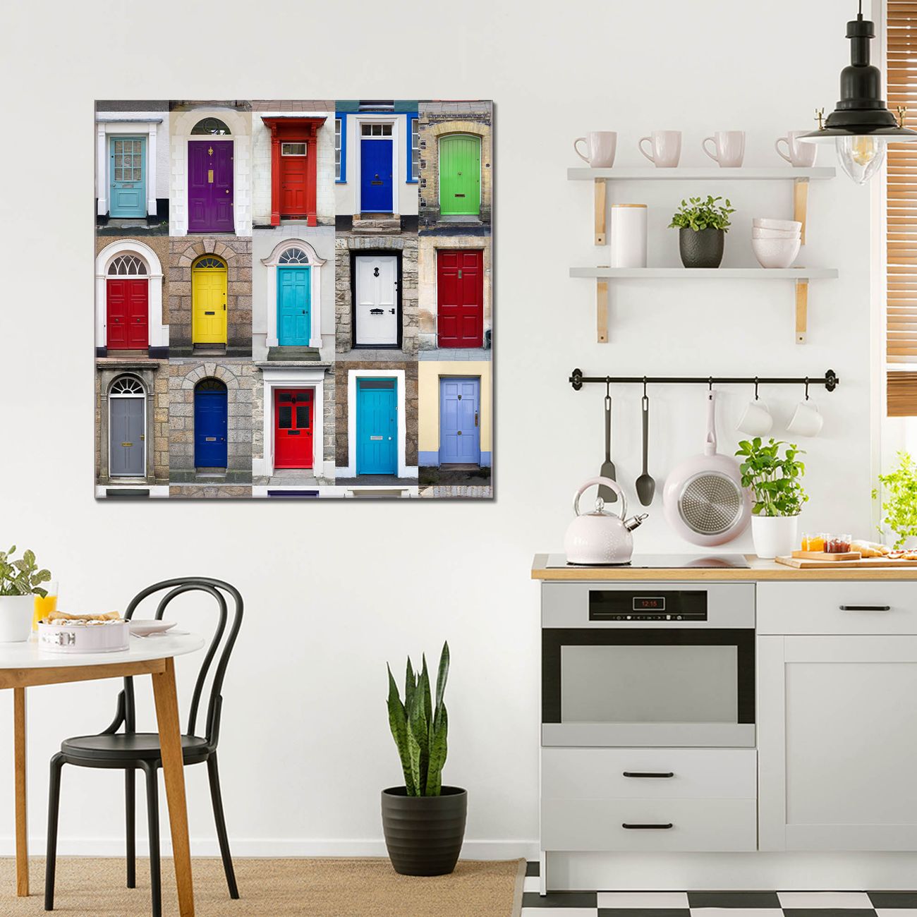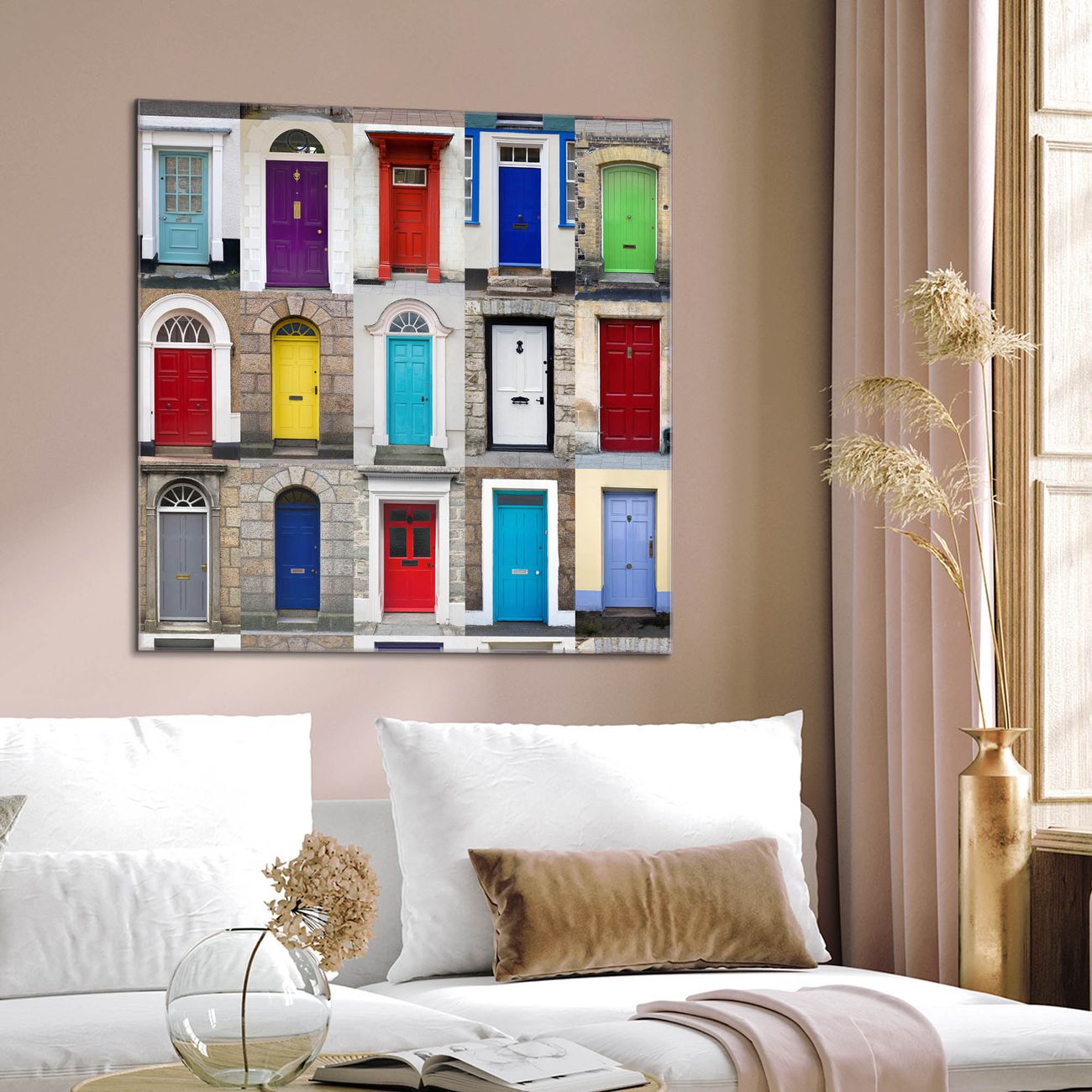 Quadratisches Wandbild aus Glas Türen