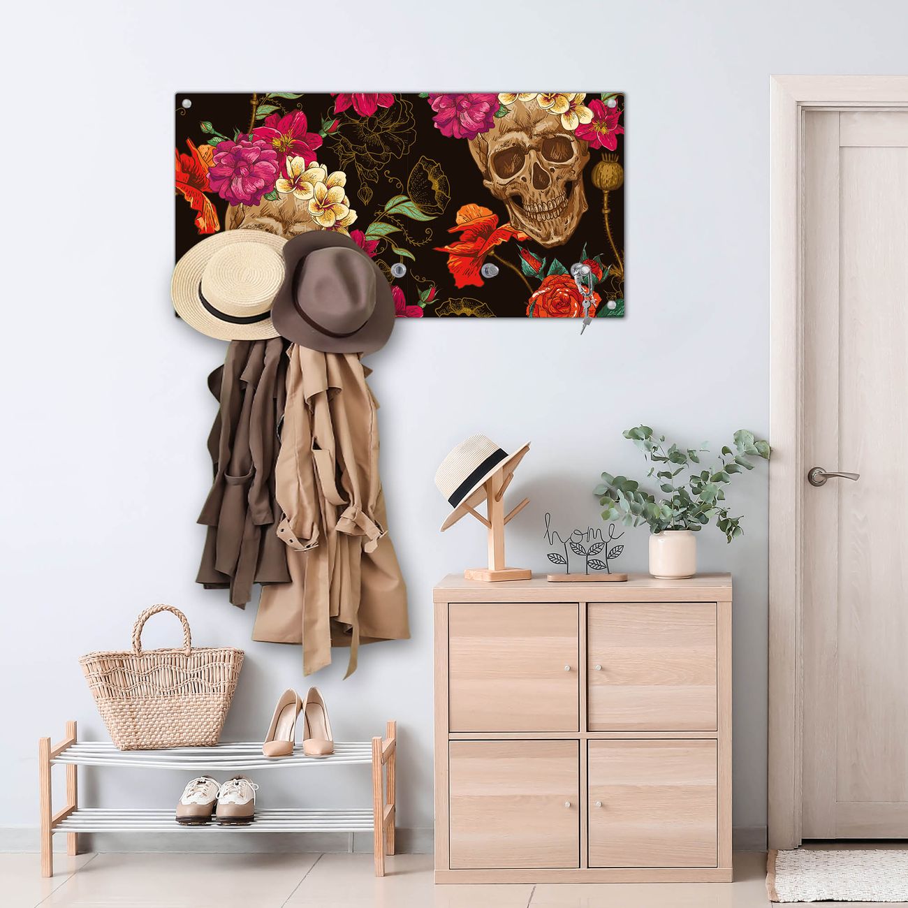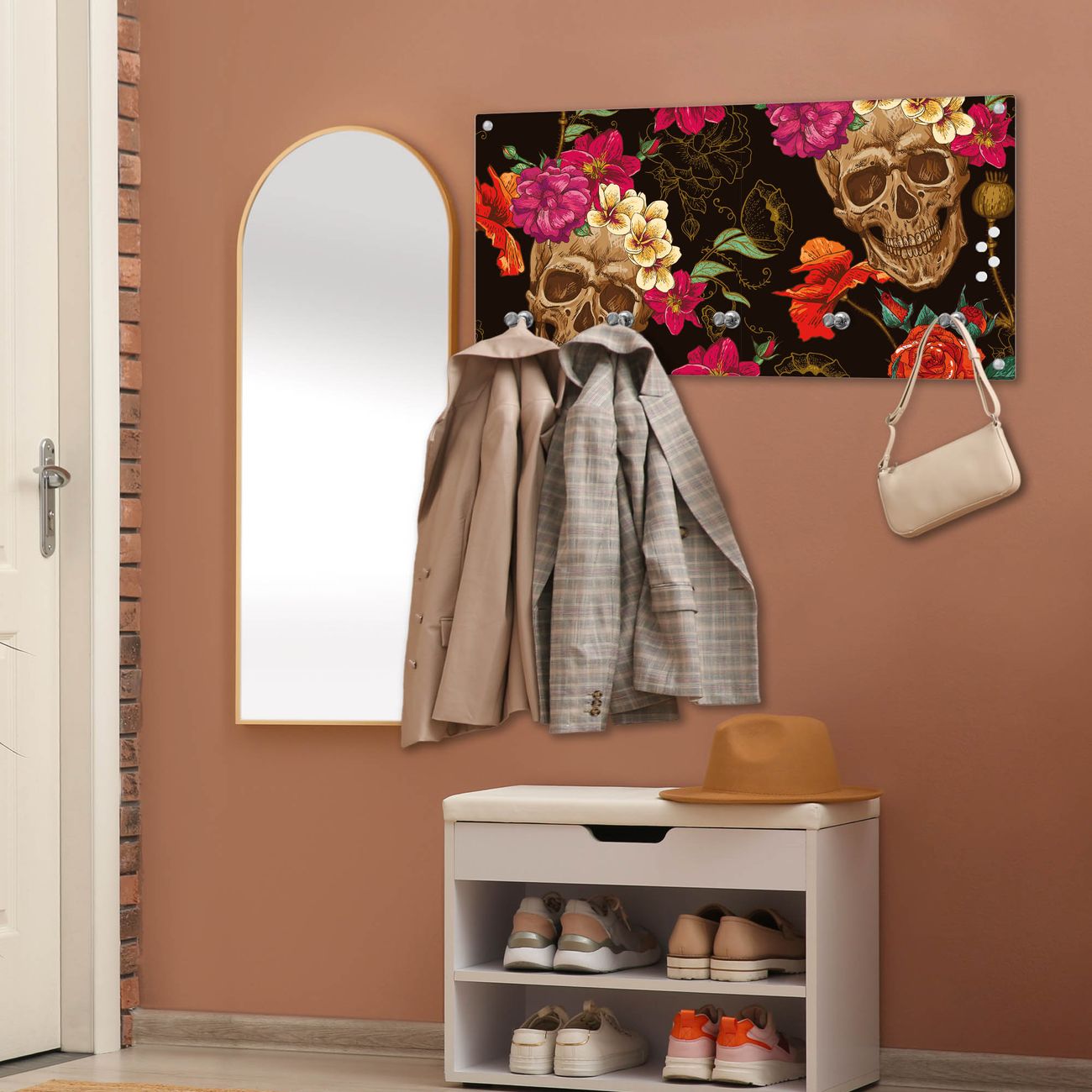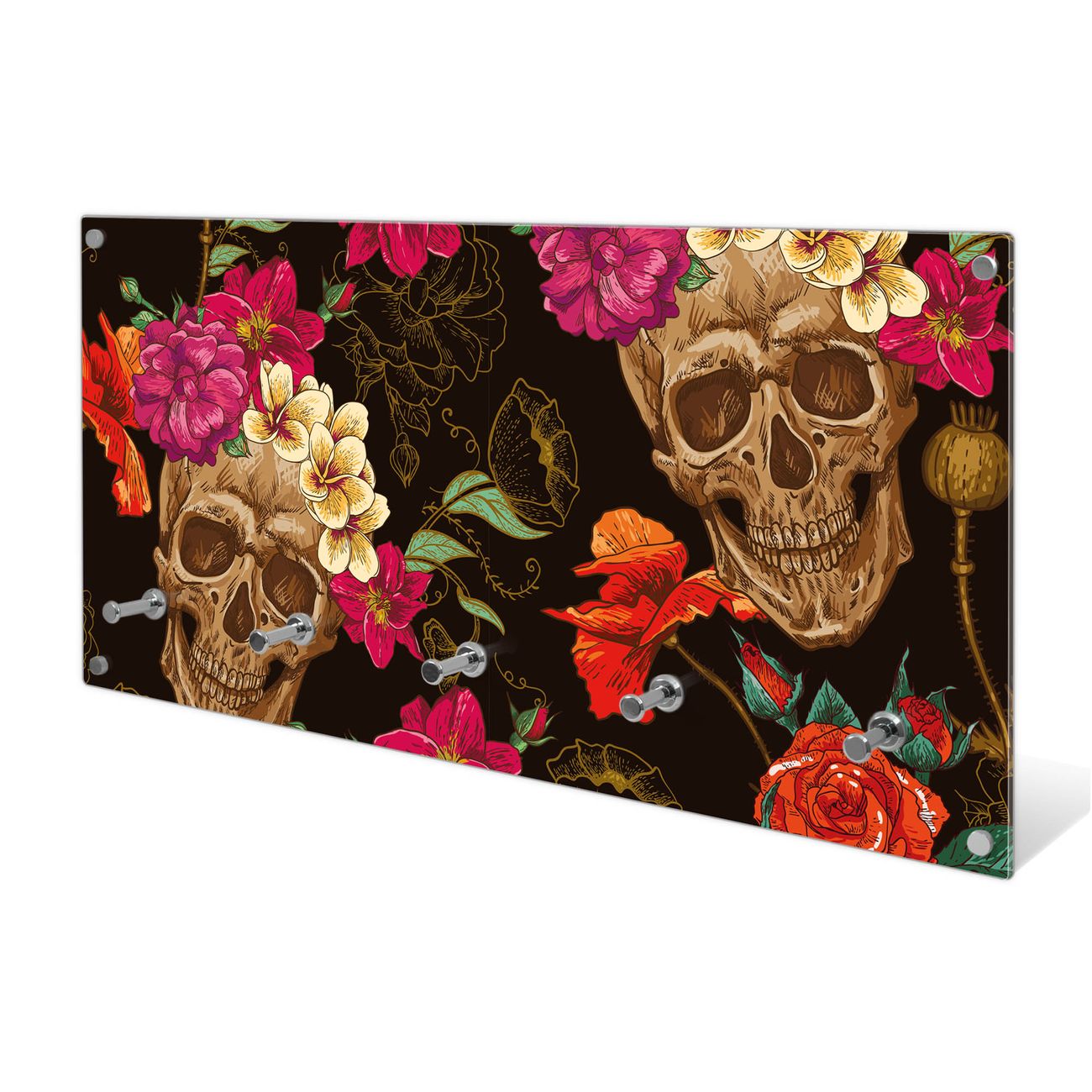 Wandgarderobe Glas 80x40cm Motiv Los Dias de Muertos
