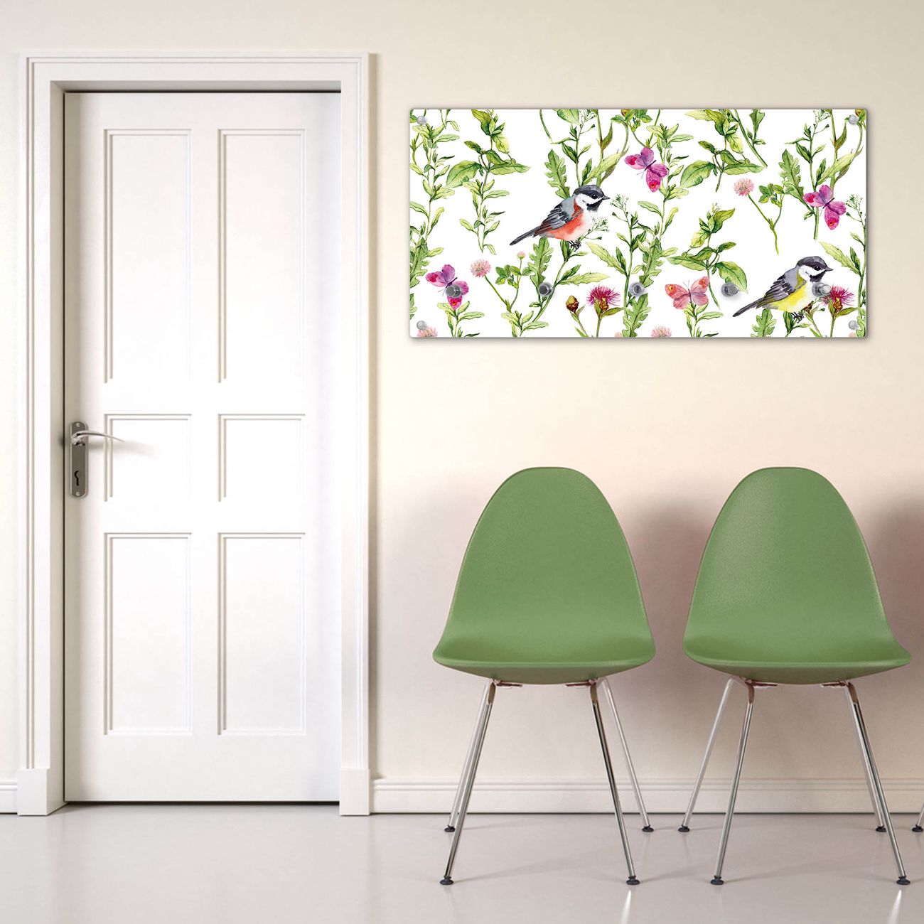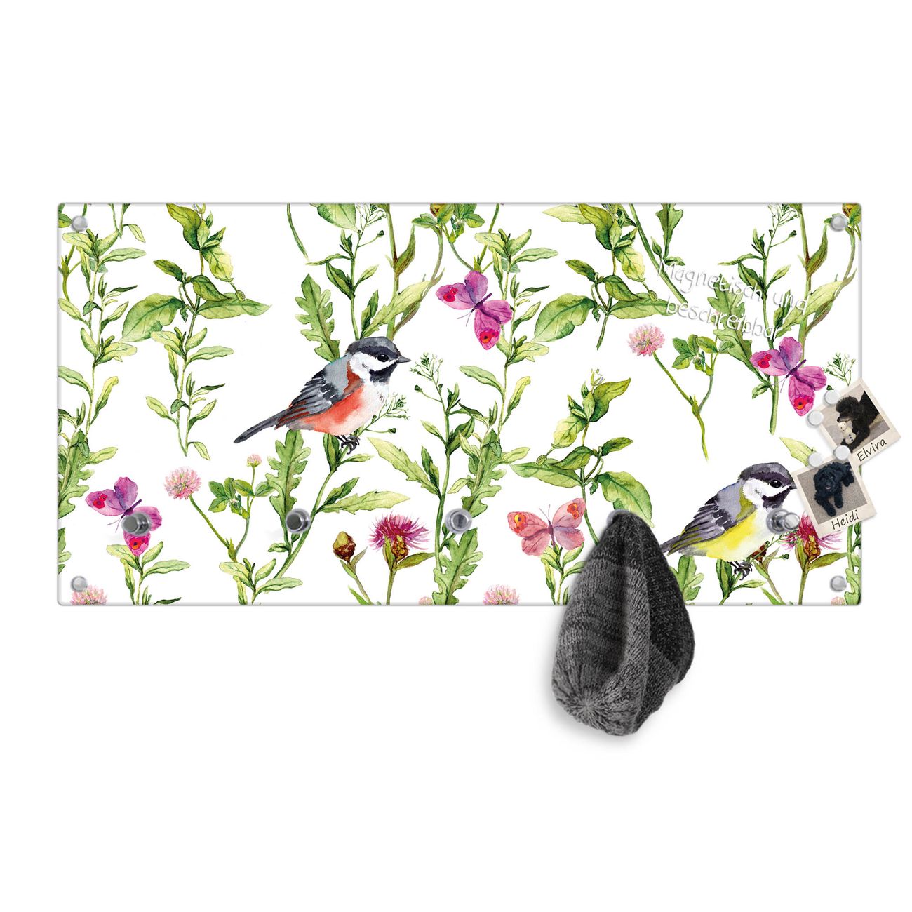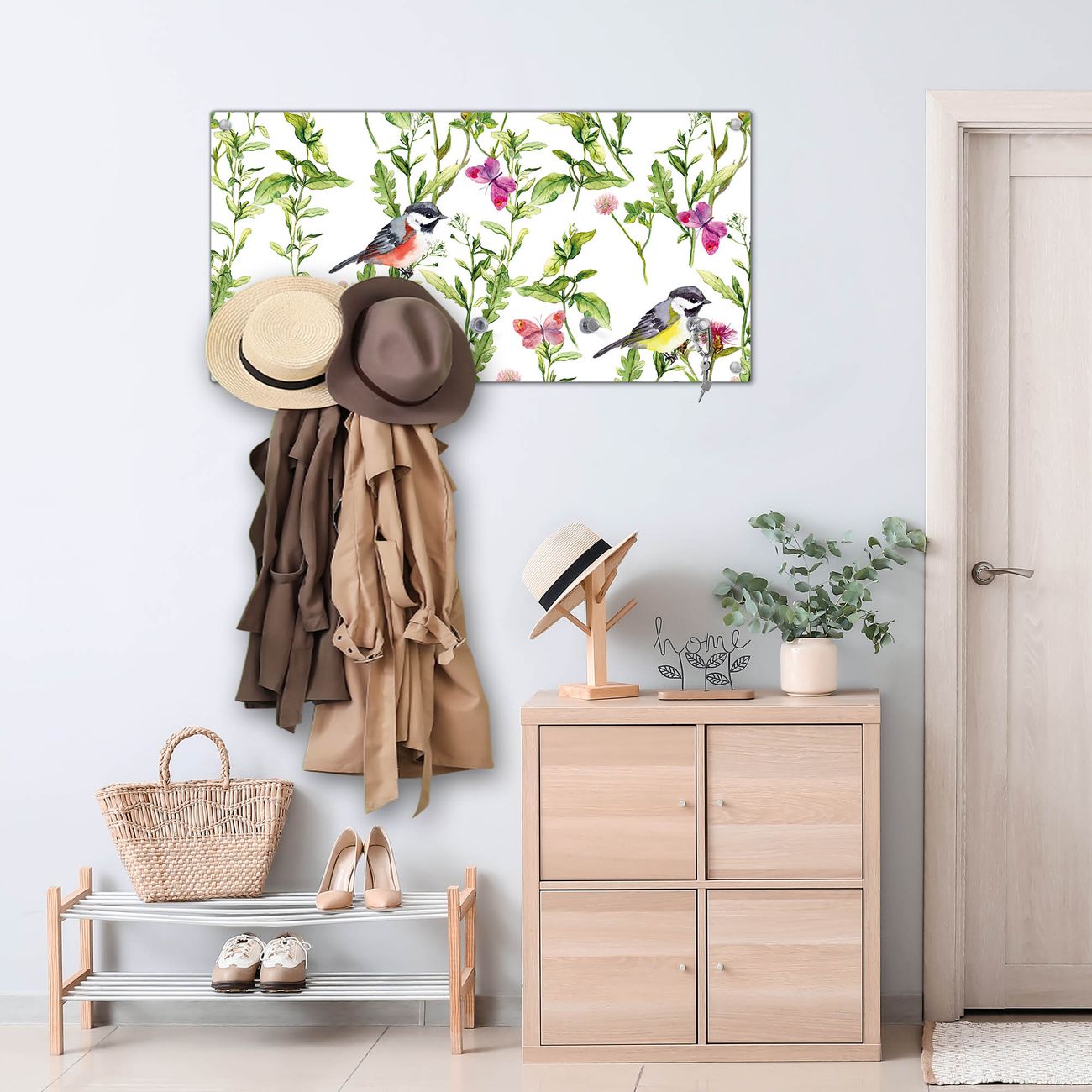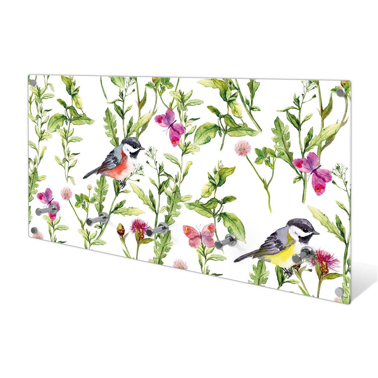 Wandgarderobe Glas 80x40cm Motiv Meisen im Klee