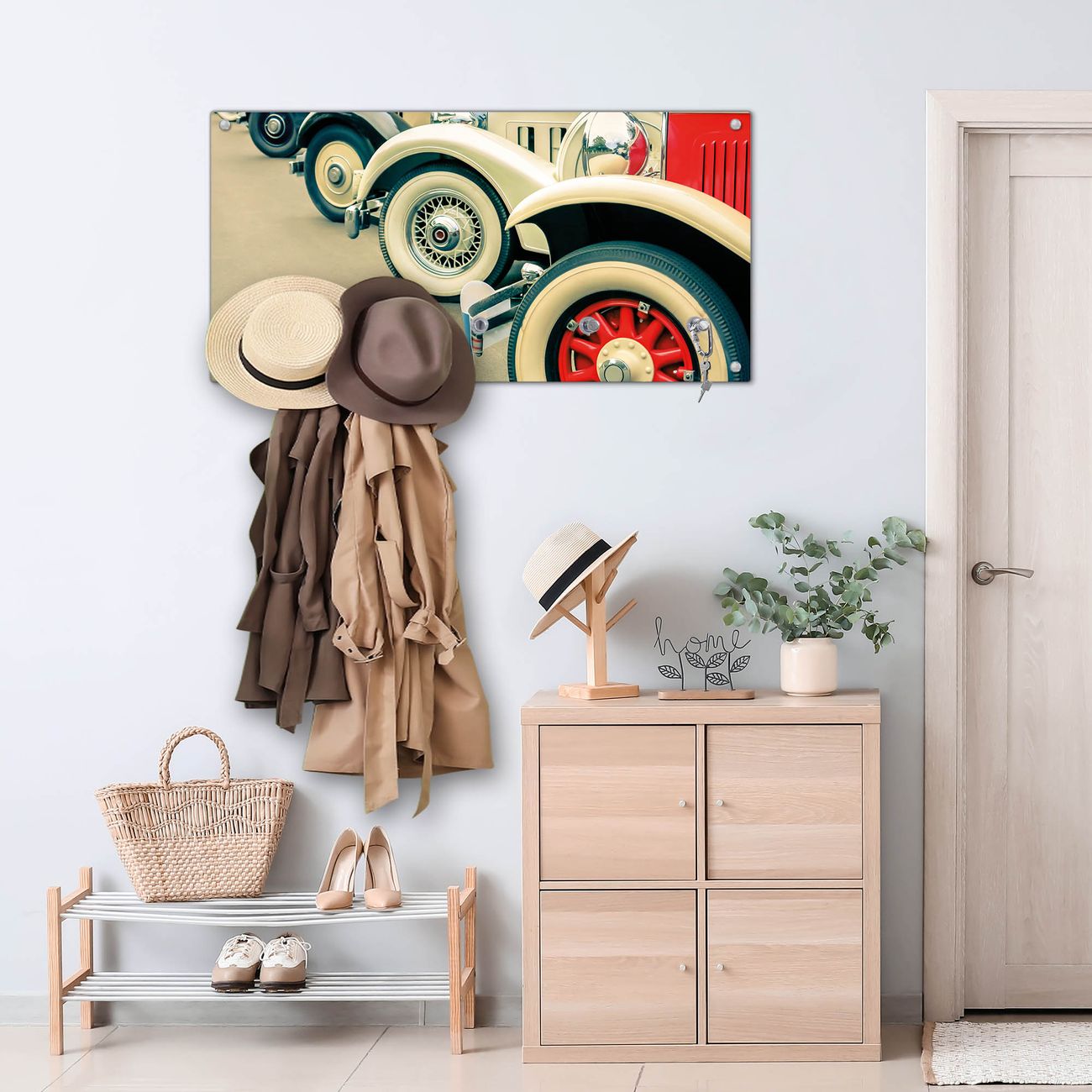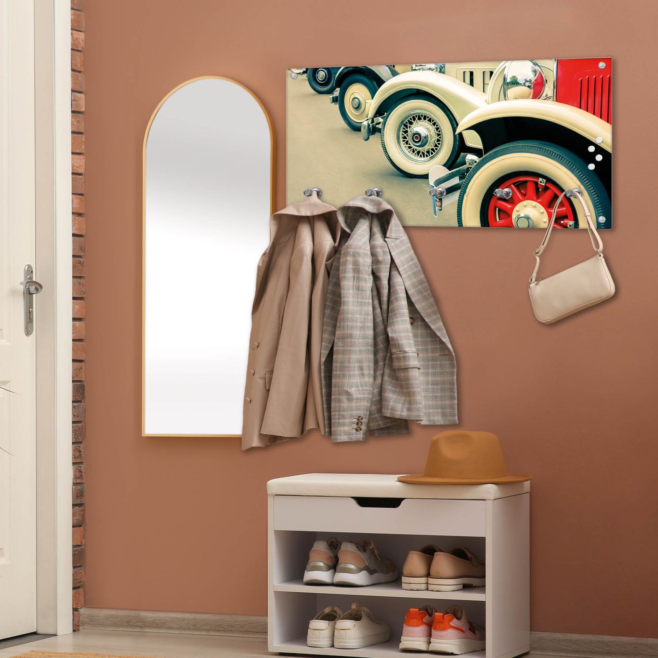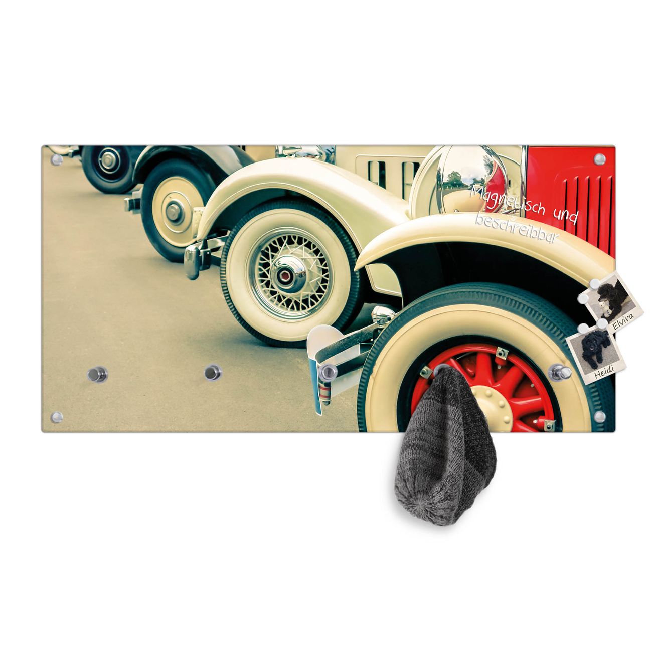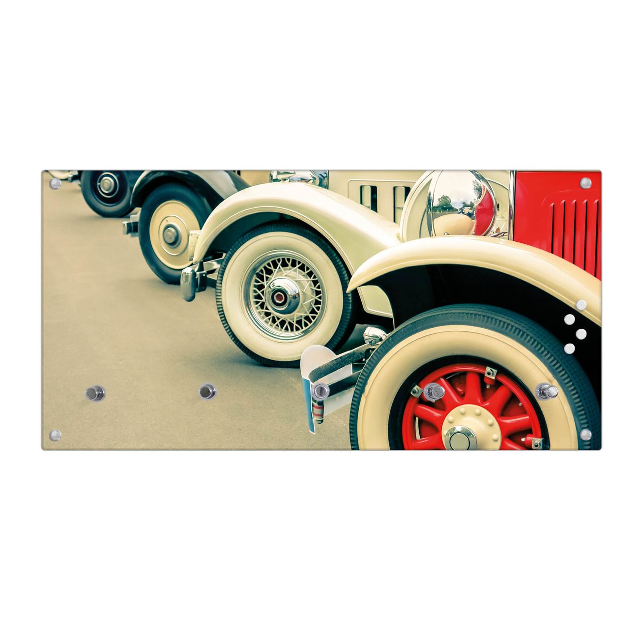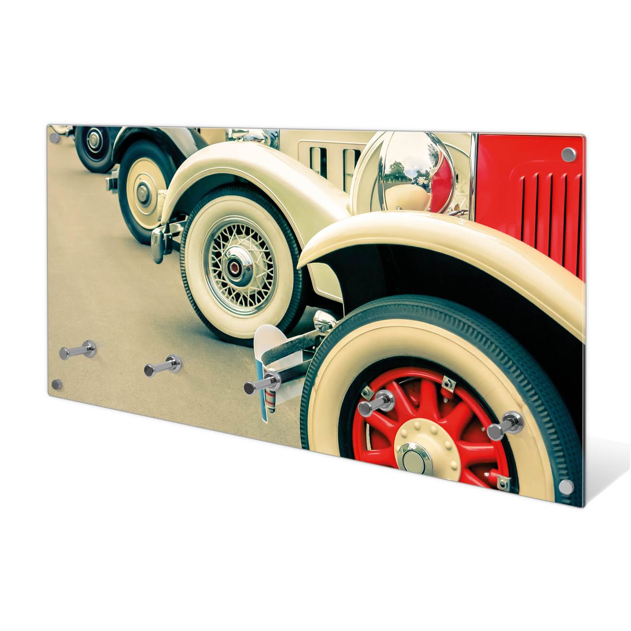 Wandgarderobe Glas 80x40cm Motiv Oldtimer Räder