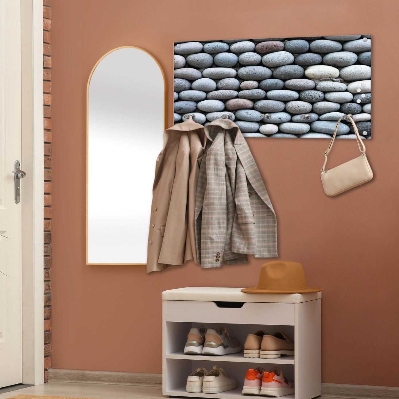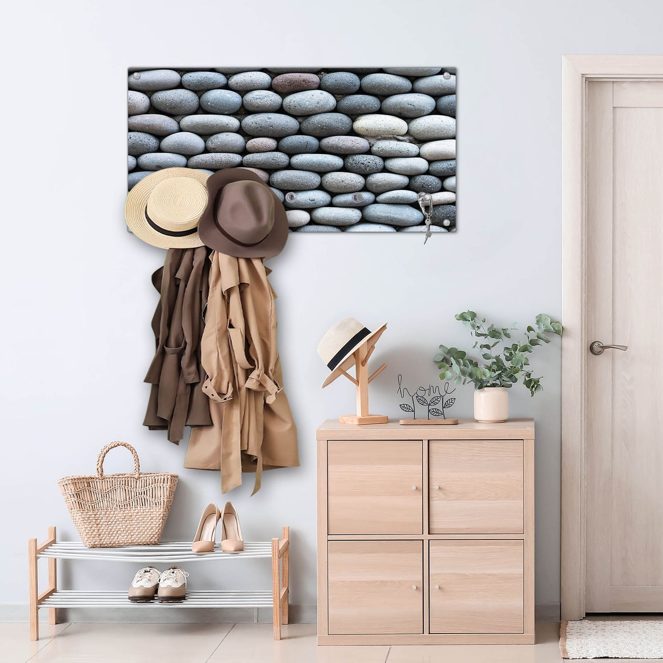Wandgarderobe Glas 80x40cm Motiv Runde Steine