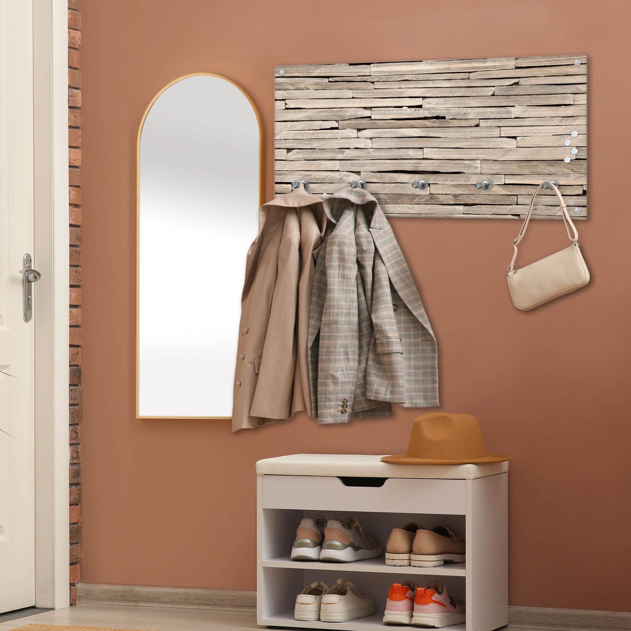 Wandgarderobe Glas 80x40cm Motiv Steinplatten