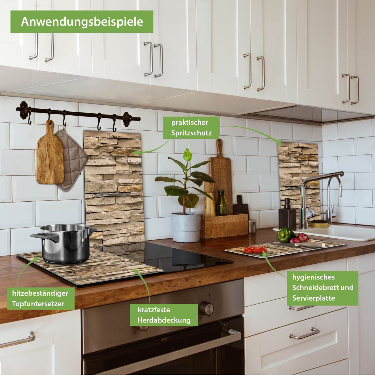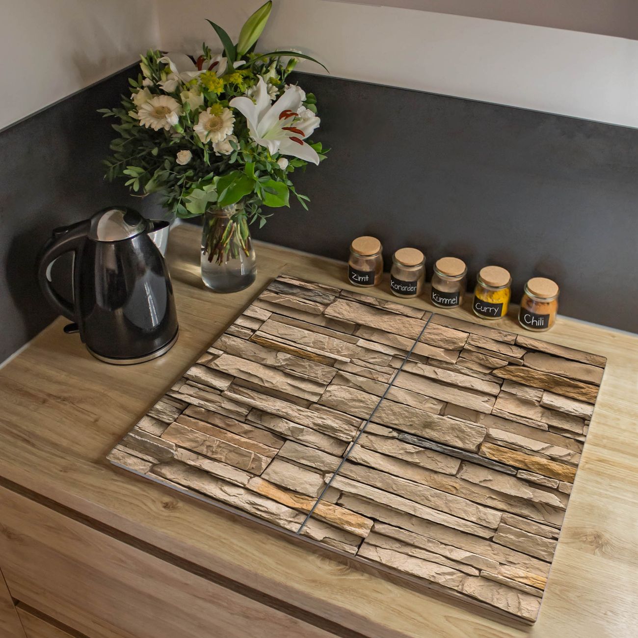 VIELSEITIG: Die Ceranfeldabdeckung ist vielseitig einsetzbar: ob als Spritzschutz hinter dem Herd für Ihre Küche oder als Glas Schneidebrett als hygienische und geruchsneutrale Unterlage. Sie können ebenfalls heiße Töpfe und Pfannen bis 100°C auf der Herdplattenabdeckung abstellen. Sie erhalten ein Multitalent für Ihre Küche. Die banjado Herdabdeckplatte aus Glas mit Motiv Alte Mauer verdeckt mit einem schönen Motiv Ihr Ceranfeld bzw. Ihren Induktionsherd. Die Herdabdeckplatte ist vielseitig einsetzbar und passt sich dabei Ihrem Einrichtungsstil an. DESIGN: Die Herdabdeckung Alte Mauer besteht aus hochwertigem, gehärtetem Glas mit einem unserer zahlreichen Motive. Sie haben die Wahl zwischen verschiedenen Maßen von einteiligen, zweiteiligen und einer dreiteiligen Herdabdeckung. Wählen Sie was zu Ihrer Einrichtung passt! DETAILS: Die Herdabdeckplatte ist vielseitig einsetzbar. Die Ecken sind für mehr Sicherheit dezent abgerundet, das Glas ist gehärtet. Sie erhalten separate Gummi Abstandshalter, damit Ihre Abdeckung rutschfest auf dem Herd steht. Diese können Sie frei positionieren, sodass die Herdabdeckung perfekt auf Ihrem Ceranfeld sitzt. BANJADO: Wir sind ein kleines Team aus dem Herzen von Sachsen und fertigen jeden Artikel nach Bestellung eigens für Sie an. Sie erhalten also keine preiswerte Importware, sondern Handarbeit. Auf Wunsch sind auch andere Farben und Größen möglich, kontakierten Sie uns gern.