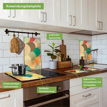 VIELSEITIG: Die Ceranfeldabdeckung ist vielseitig einsetzbar: ob als Spritzschutz hinter dem Herd für Ihre Küche oder als Glas Schneidebrett als hygienische und geruchsneutrale Unterlage. Sie können ebenfalls heiße Töpfe und Pfannen bis 100°C auf der Herdplattenabdeckung abstellen. Sie erhalten ein Multitalent für Ihre Küche. Die banjado Herdabdeckplatte aus Glas mit Motiv Aquarell Schuppen verdeckt mit einem schönen Motiv Ihr Ceranfeld bzw. Ihren Induktionsherd. Die Herdabdeckplatte ist vielseitig einsetzbar und passt sich dabei Ihrem Einrichtungsstil an. DESIGN: Die Herdabdeckung Aquarell Schuppen besteht aus hochwertigem, gehärtetem Glas mit einem unserer zahlreichen Motive. Sie haben die Wahl zwischen verschiedenen Maßen von einteiligen, zweiteiligen und einer dreiteiligen Herdabdeckung. Wählen Sie was zu Ihrer Einrichtung passt! DETAILS: Die Herdabdeckplatte ist vielseitig einsetzbar. Die Ecken sind für mehr Sicherheit dezent abgerundet, das Glas ist gehärtet. Sie erhalten separate Gummi Abstandshalter, damit Ihre Abdeckung rutschfest auf dem Herd steht. Diese können Sie frei positionieren, sodass die Herdabdeckung perfekt auf Ihrem Ceranfeld sitzt. BANJADO: Wir sind ein kleines Team aus dem Herzen von Sachsen und fertigen jeden Artikel nach Bestellung eigens für Sie an. Sie erhalten also keine preiswerte Importware, sondern Handarbeit. Auf Wunsch sind auch andere Farben und Größen möglich, kontakierten Sie uns gern.