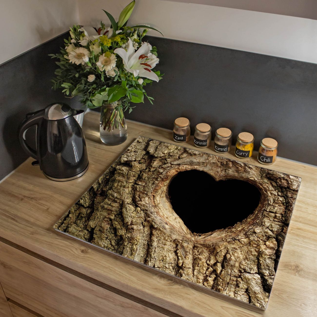 Herdabdeckplatte 1, 2 und 3 teilig Motiv Baumherz