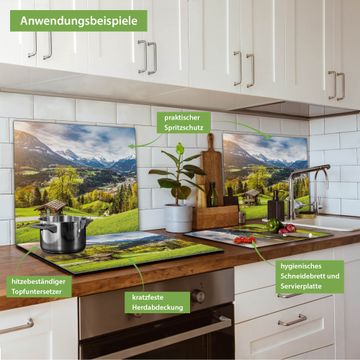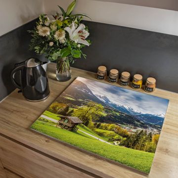 VIELSEITIG: Die Ceranfeldabdeckung ist vielseitig einsetzbar: ob als Spritzschutz hinter dem Herd für Ihre Küche oder als Glas Schneidebrett als hygienische und geruchsneutrale Unterlage. Sie können ebenfalls heiße Töpfe und Pfannen bis 100°C auf der Herdplattenabdeckung abstellen. Sie erhalten ein Multitalent für Ihre Küche. Die banjado Herdabdeckplatte aus Glas mit Motiv Berchtesgadener Land verdeckt mit einem schönen Motiv Ihr Ceranfeld bzw. Ihren Induktionsherd. Die Herdabdeckplatte ist vielseitig einsetzbar und passt sich dabei Ihrem Einrichtungsstil an. DESIGN: Die Herdabdeckung Berchtesgadener Land besteht aus hochwertigem, gehärtetem Glas mit einem unserer zahlreichen Motive. Sie haben die Wahl zwischen verschiedenen Maßen von einteiligen, zweiteiligen und einer dreiteiligen Herdabdeckung. Wählen Sie was zu Ihrer Einrichtung passt! DETAILS: Die Herdabdeckplatte ist vielseitig einsetzbar. Die Ecken sind für mehr Sicherheit dezent abgerundet, das Glas ist gehärtet. Sie erhalten separate Gummi Abstandshalter, damit Ihre Abdeckung rutschfest auf dem Herd steht. Diese können Sie frei positionieren, sodass die Herdabdeckung perfekt auf Ihrem Ceranfeld sitzt. BANJADO: Wir sind ein kleines Team aus dem Herzen von Sachsen und fertigen jeden Artikel nach Bestellung eigens für Sie an. Sie erhalten also keine preiswerte Importware, sondern Handarbeit. Auf Wunsch sind auch andere Farben und Größen möglich, kontakierten Sie uns gern.