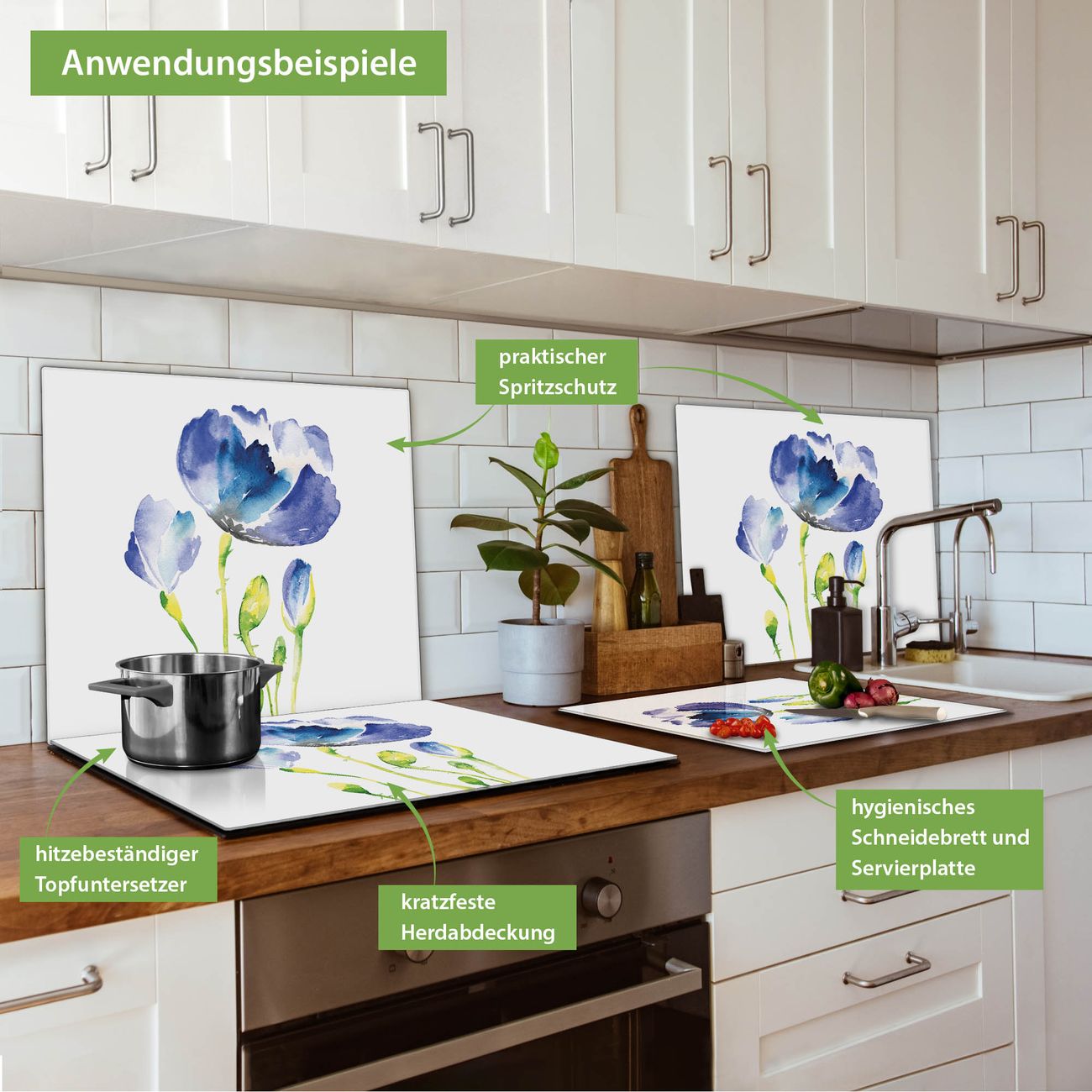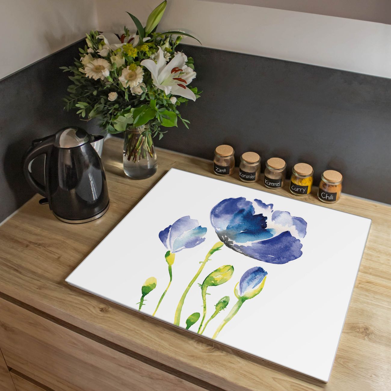 Herdabdeckplatte 1, 2 und 3 teilig Motiv Blauer Mohn