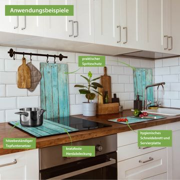 VIELSEITIG: Die Ceranfeldabdeckung ist vielseitig einsetzbar: ob als Spritzschutz hinter dem Herd für Ihre Küche oder als Glas Schneidebrett als hygienische und geruchsneutrale Unterlage. Sie können ebenfalls heiße Töpfe und Pfannen bis 100°C auf der Herdplattenabdeckung abstellen. Sie erhalten ein Multitalent für Ihre Küche. Die banjado Herdabdeckplatte aus Glas mit Motiv Blaues Holz verdeckt mit einem schönen Motiv Ihr Ceranfeld bzw. Ihren Induktionsherd. Die Herdabdeckplatte ist vielseitig einsetzbar und passt sich dabei Ihrem Einrichtungsstil an. DESIGN: Die Herdabdeckung Blaues Holz besteht aus hochwertigem, gehärtetem Glas mit einem unserer zahlreichen Motive. Sie haben die Wahl zwischen verschiedenen Maßen von einteiligen, zweiteiligen und einer dreiteiligen Herdabdeckung. Wählen Sie was zu Ihrer Einrichtung passt! DETAILS: Die Herdabdeckplatte ist vielseitig einsetzbar. Die Ecken sind für mehr Sicherheit dezent abgerundet, das Glas ist gehärtet. Sie erhalten separate Gummi Abstandshalter, damit Ihre Abdeckung rutschfest auf dem Herd steht. Diese können Sie frei positionieren, sodass die Herdabdeckung perfekt auf Ihrem Ceranfeld sitzt. BANJADO: Wir sind ein kleines Team aus dem Herzen von Sachsen und fertigen jeden Artikel nach Bestellung eigens für Sie an. Sie erhalten also keine preiswerte Importware, sondern Handarbeit. Auf Wunsch sind auch andere Farben und Größen möglich, kontakierten Sie uns gern.