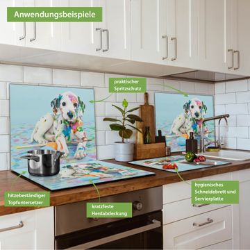 VIELSEITIG: Die Ceranfeldabdeckung ist vielseitig einsetzbar: ob als Spritzschutz hinter dem Herd für Ihre Küche oder als Glas Schneidebrett als hygienische und geruchsneutrale Unterlage. Sie können ebenfalls heiße Töpfe und Pfannen bis 100°C auf der Herdplattenabdeckung abstellen. Sie erhalten ein Multitalent für Ihre Küche. Die banjado Herdabdeckplatte aus Glas mit Motiv Bunter Dalmatiner verdeckt mit einem schönen Motiv Ihr Ceranfeld bzw. Ihren Induktionsherd. Die Herdabdeckplatte ist vielseitig einsetzbar und passt sich dabei Ihrem Einrichtungsstil an. DESIGN: Die Herdabdeckung Bunter Dalmatiner besteht aus hochwertigem, gehärtetem Glas mit einem unserer zahlreichen Motive. Sie haben die Wahl zwischen verschiedenen Maßen von einteiligen, zweiteiligen und einer dreiteiligen Herdabdeckung. Wählen Sie was zu Ihrer Einrichtung passt! DETAILS: Die Herdabdeckplatte ist vielseitig einsetzbar. Die Ecken sind für mehr Sicherheit dezent abgerundet, das Glas ist gehärtet. Sie erhalten separate Gummi Abstandshalter, damit Ihre Abdeckung rutschfest auf dem Herd steht. Diese können Sie frei positionieren, sodass die Herdabdeckung perfekt auf Ihrem Ceranfeld sitzt. BANJADO: Wir sind ein kleines Team aus dem Herzen von Sachsen und fertigen jeden Artikel nach Bestellung eigens für Sie an. Sie erhalten also keine preiswerte Importware, sondern Handarbeit. Auf Wunsch sind auch andere Farben und Größen möglich, kontakierten Sie uns gern.
