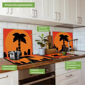 VIELSEITIG: Die Ceranfeldabdeckung ist vielseitig einsetzbar: ob als Spritzschutz hinter dem Herd für Ihre Küche oder als Glas Schneidebrett als hygienische und geruchsneutrale Unterlage. Sie können ebenfalls heiße Töpfe und Pfannen bis 100°C auf der Herdplattenabdeckung abstellen. Sie erhalten ein Multitalent für Ihre Küche. Die banjado Herdabdeckplatte aus Glas mit Motiv City Poster Los Angeles verdeckt mit einem schönen Motiv Ihr Ceranfeld bzw. Ihren Induktionsherd. Die Herdabdeckplatte ist vielseitig einsetzbar und passt sich dabei Ihrem Einrichtungsstil an. DESIGN: Die Herdabdeckung City Poster Los Angeles besteht aus hochwertigem, gehärtetem Glas mit einem unserer zahlreichen Motive. Sie haben die Wahl zwischen verschiedenen Maßen von einteiligen, zweiteiligen und einer dreiteiligen Herdabdeckung. Wählen Sie was zu Ihrer Einrichtung passt! DETAILS: Die Herdabdeckplatte ist vielseitig einsetzbar. Die Ecken sind für mehr Sicherheit dezent abgerundet, das Glas ist gehärtet. Sie erhalten separate Gummi Abstandshalter, damit Ihre Abdeckung rutschfest auf dem Herd steht. Diese können Sie frei positionieren, sodass die Herdabdeckung perfekt auf Ihrem Ceranfeld sitzt. BANJADO: Wir sind ein kleines Team aus dem Herzen von Sachsen und fertigen jeden Artikel nach Bestellung eigens für Sie an. Sie erhalten also keine preiswerte Importware, sondern Handarbeit. Auf Wunsch sind auch andere Farben und Größen möglich, kontakierten Sie uns gern.