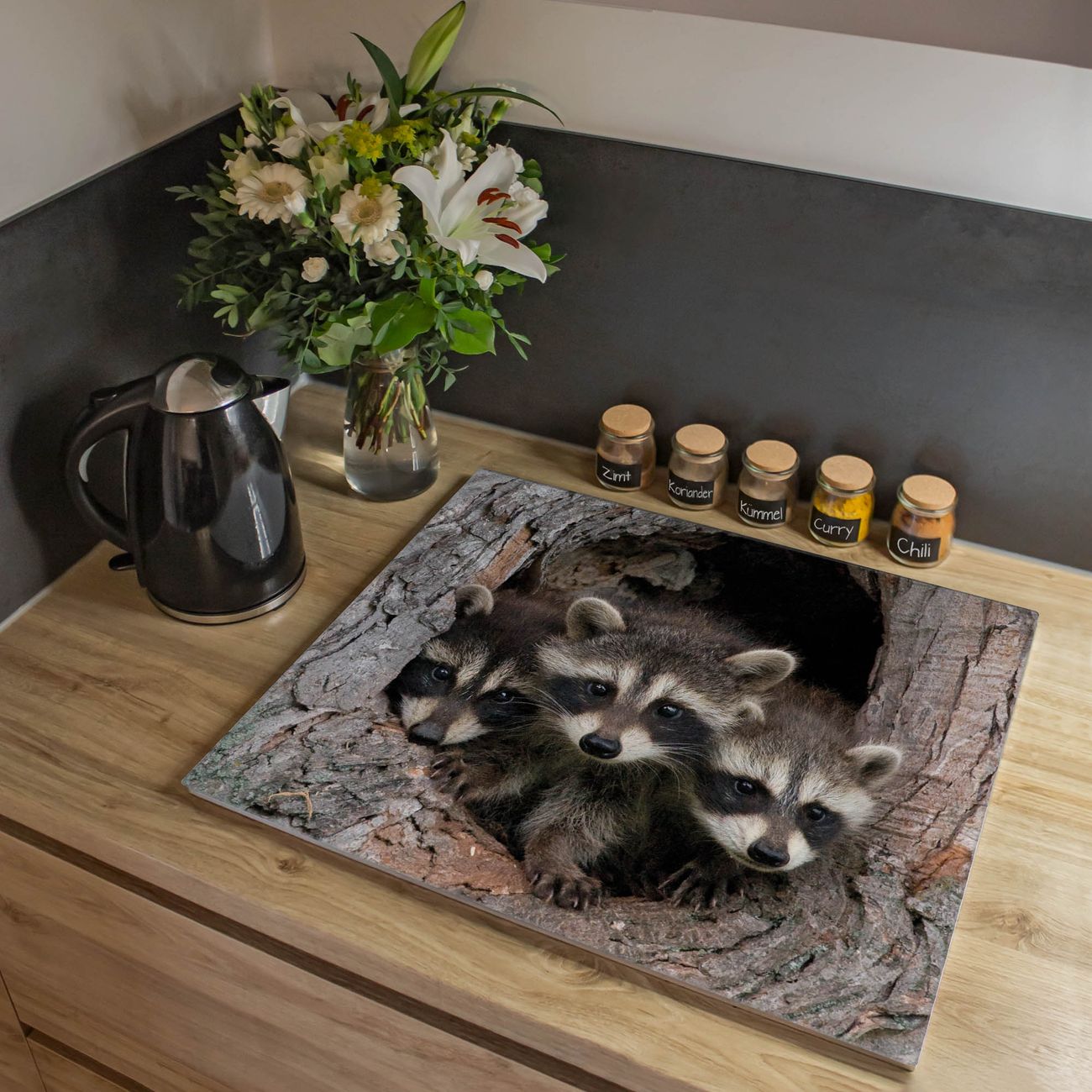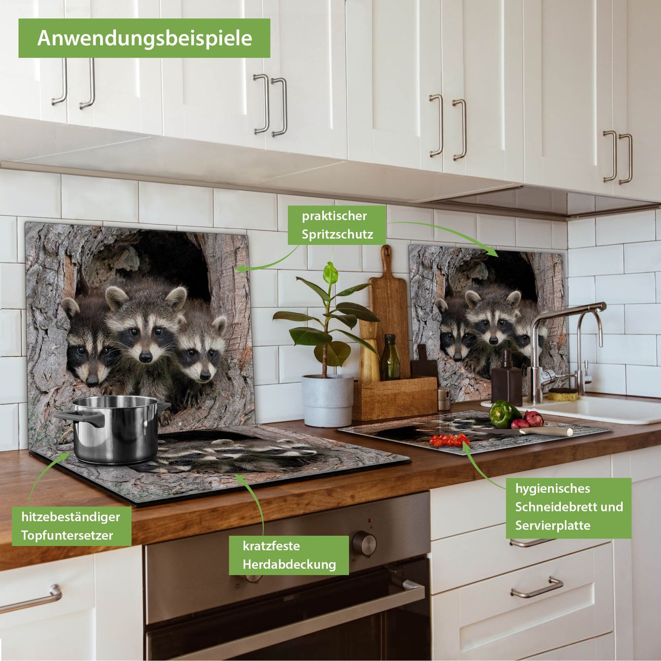 Herdabdeckplatte 1, 2 und 3 teilig Motiv Drei Waschbären