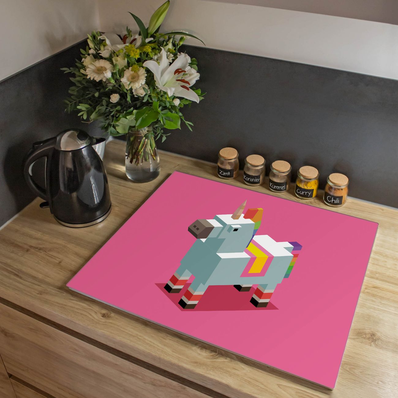VIELSEITIG: Die Ceranfeldabdeckung ist vielseitig einsetzbar: ob als Spritzschutz hinter dem Herd für Ihre Küche oder als Glas Schneidebrett als hygienische und geruchsneutrale Unterlage. Sie können ebenfalls heiße Töpfe und Pfannen bis 100°C auf der Herdplattenabdeckung abstellen. Sie erhalten ein Multitalent für Ihre Küche. Die banjado Herdabdeckplatte aus Glas mit Motiv Einhorn Block verdeckt mit einem schönen Motiv Ihr Ceranfeld bzw. Ihren Induktionsherd. Die Herdabdeckplatte ist vielseitig einsetzbar und passt sich dabei Ihrem Einrichtungsstil an. DESIGN: Die Herdabdeckung Einhorn Block besteht aus hochwertigem, gehärtetem Glas mit einem unserer zahlreichen Motive. Sie haben die Wahl zwischen verschiedenen Maßen von einteiligen, zweiteiligen und einer dreiteiligen Herdabdeckung. Wählen Sie was zu Ihrer Einrichtung passt! DETAILS: Die Herdabdeckplatte ist vielseitig einsetzbar. Die Ecken sind für mehr Sicherheit dezent abgerundet, das Glas ist gehärtet. Sie erhalten separate Gummi Abstandshalter, damit Ihre Abdeckung rutschfest auf dem Herd steht. Diese können Sie frei positionieren, sodass die Herdabdeckung perfekt auf Ihrem Ceranfeld sitzt. BANJADO: Wir sind ein kleines Team aus dem Herzen von Sachsen und fertigen jeden Artikel nach Bestellung eigens für Sie an. Sie erhalten also keine preiswerte Importware, sondern Handarbeit. Auf Wunsch sind auch andere Farben und Größen möglich, kontakierten Sie uns gern.
