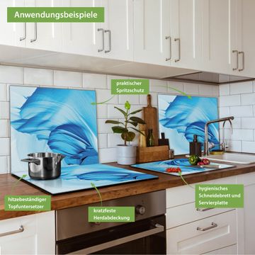 VIELSEITIG: Die Ceranfeldabdeckung ist vielseitig einsetzbar: ob als Spritzschutz hinter dem Herd für Ihre Küche oder als Glas Schneidebrett als hygienische und geruchsneutrale Unterlage. Sie können ebenfalls heiße Töpfe und Pfannen bis 100°C auf der Herdplattenabdeckung abstellen. Sie erhalten ein Multitalent für Ihre Küche. Die banjado Herdabdeckplatte aus Glas mit Motiv Ewiges Eis verdeckt mit einem schönen Motiv Ihr Ceranfeld bzw. Ihren Induktionsherd. Die Herdabdeckplatte ist vielseitig einsetzbar und passt sich dabei Ihrem Einrichtungsstil an. DESIGN: Die Herdabdeckung Ewiges Eis besteht aus hochwertigem, gehärtetem Glas mit einem unserer zahlreichen Motive. Sie haben die Wahl zwischen verschiedenen Maßen von einteiligen, zweiteiligen und einer dreiteiligen Herdabdeckung. Wählen Sie was zu Ihrer Einrichtung passt! DETAILS: Die Herdabdeckplatte ist vielseitig einsetzbar. Die Ecken sind für mehr Sicherheit dezent abgerundet, das Glas ist gehärtet. Sie erhalten separate Gummi Abstandshalter, damit Ihre Abdeckung rutschfest auf dem Herd steht. Diese können Sie frei positionieren, sodass die Herdabdeckung perfekt auf Ihrem Ceranfeld sitzt. BANJADO: Wir sind ein kleines Team aus dem Herzen von Sachsen und fertigen jeden Artikel nach Bestellung eigens für Sie an. Sie erhalten also keine preiswerte Importware, sondern Handarbeit. Auf Wunsch sind auch andere Farben und Größen möglich, kontakierten Sie uns gern.