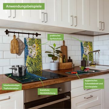 VIELSEITIG: Die Ceranfeldabdeckung ist vielseitig einsetzbar: ob als Spritzschutz hinter dem Herd für Ihre Küche oder als Glas Schneidebrett als hygienische und geruchsneutrale Unterlage. Sie können ebenfalls heiße Töpfe und Pfannen bis 100°C auf der Herdplattenabdeckung abstellen. Sie erhalten ein Multitalent für Ihre Küche. Die banjado Herdabdeckplatte aus Glas mit Motiv Fluss im Tal verdeckt mit einem schönen Motiv Ihr Ceranfeld bzw. Ihren Induktionsherd. Die Herdabdeckplatte ist vielseitig einsetzbar und passt sich dabei Ihrem Einrichtungsstil an. DESIGN: Die Herdabdeckung Fluss im Tal besteht aus hochwertigem, gehärtetem Glas mit einem unserer zahlreichen Motive. Sie haben die Wahl zwischen verschiedenen Maßen von einteiligen, zweiteiligen und einer dreiteiligen Herdabdeckung. Wählen Sie was zu Ihrer Einrichtung passt! DETAILS: Die Herdabdeckplatte ist vielseitig einsetzbar. Die Ecken sind für mehr Sicherheit dezent abgerundet, das Glas ist gehärtet. Sie erhalten separate Gummi Abstandshalter, damit Ihre Abdeckung rutschfest auf dem Herd steht. Diese können Sie frei positionieren, sodass die Herdabdeckung perfekt auf Ihrem Ceranfeld sitzt. BANJADO: Wir sind ein kleines Team aus dem Herzen von Sachsen und fertigen jeden Artikel nach Bestellung eigens für Sie an. Sie erhalten also keine preiswerte Importware, sondern Handarbeit. Auf Wunsch sind auch andere Farben und Größen möglich, kontakierten Sie uns gern.