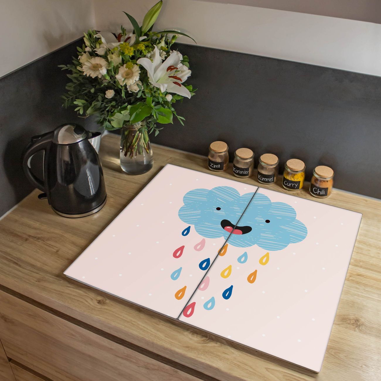 Herdabdeckplatte 1, 2 und 3 teilig Motiv glückliche Regenwolke