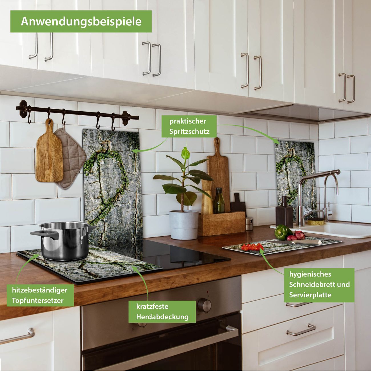 Herdabdeckplatte 1, 2 und 3 teilig Motiv Herz Aus Moos