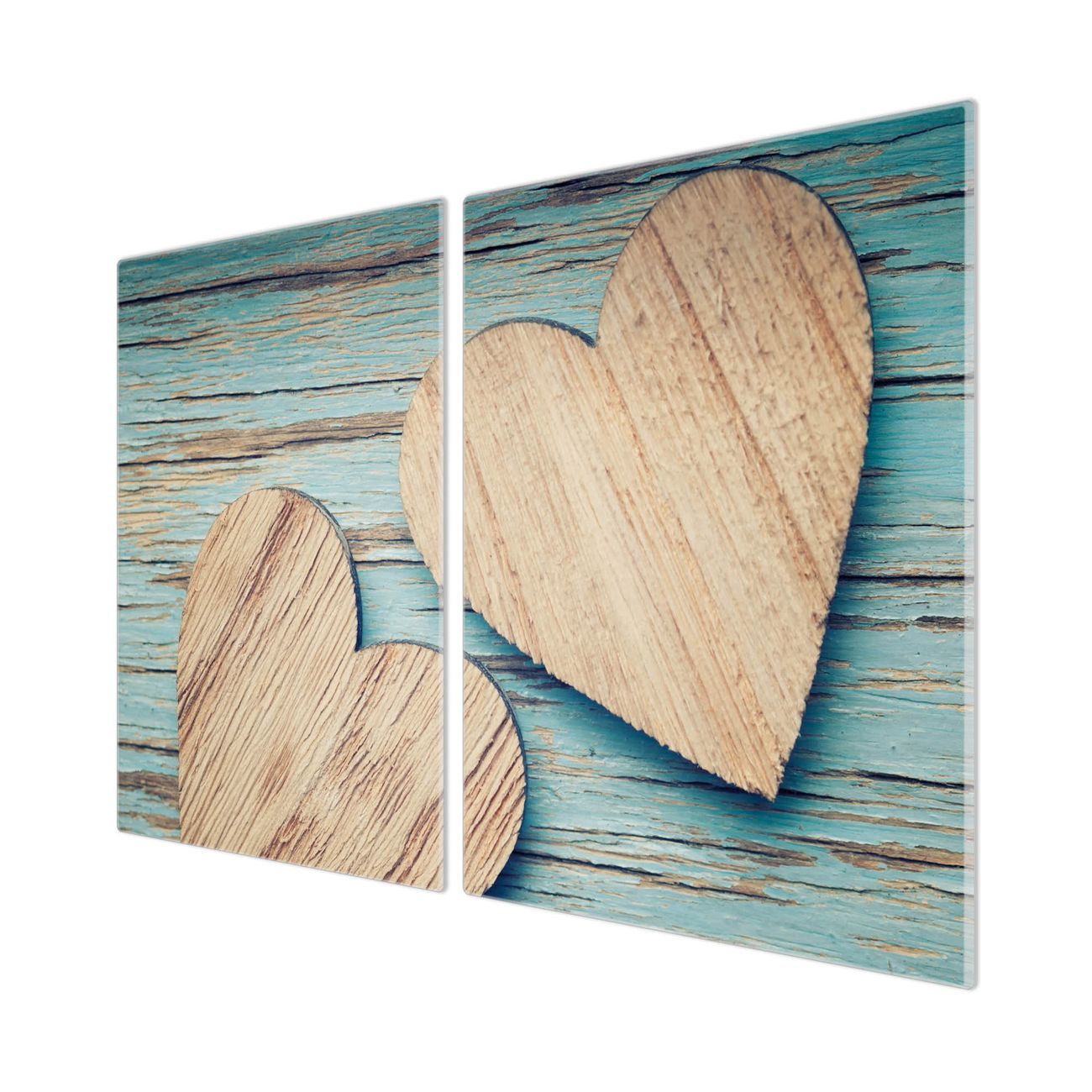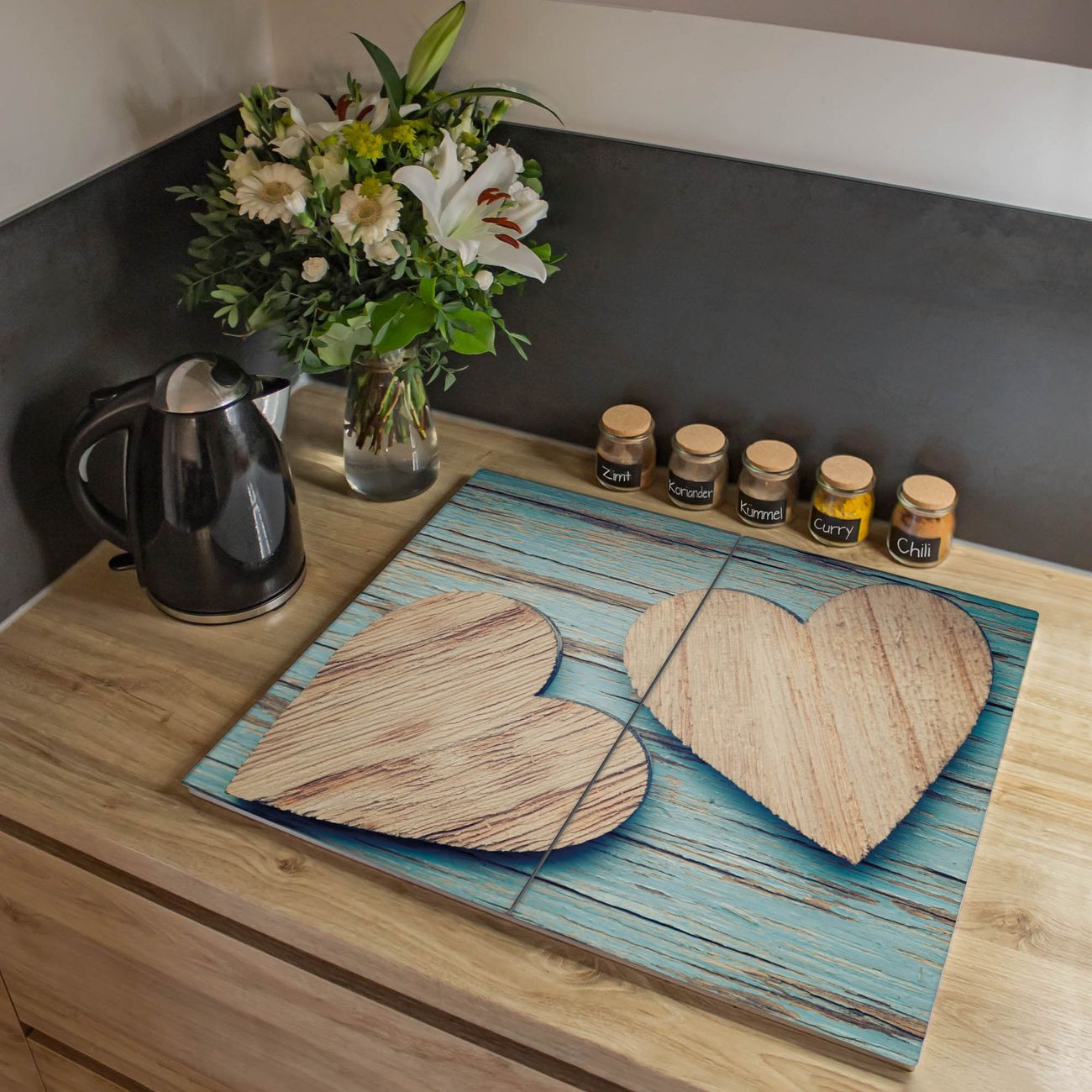 Herdabdeckplatte 1, 2 und 3 teilig Motiv Holz Herzen