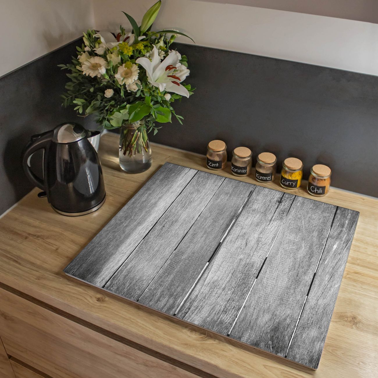 VIELSEITIG: Die Ceranfeldabdeckung ist vielseitig einsetzbar: ob als Spritzschutz hinter dem Herd für Ihre Küche oder als Glas Schneidebrett als hygienische und geruchsneutrale Unterlage. Sie können ebenfalls heiße Töpfe und Pfannen bis 100°C auf der Herdplattenabdeckung abstellen. Sie erhalten ein Multitalent für Ihre Küche. Die banjado Herdabdeckplatte aus Glas mit Motiv Holz Monochrom verdeckt mit einem schönen Motiv Ihr Ceranfeld bzw. Ihren Induktionsherd. Die Herdabdeckplatte ist vielseitig einsetzbar und passt sich dabei Ihrem Einrichtungsstil an. DESIGN: Die Herdabdeckung Holz Monochrom besteht aus hochwertigem, gehärtetem Glas mit einem unserer zahlreichen Motive. Sie haben die Wahl zwischen verschiedenen Maßen von einteiligen, zweiteiligen und einer dreiteiligen Herdabdeckung. Wählen Sie was zu Ihrer Einrichtung passt! DETAILS: Die Herdabdeckplatte ist vielseitig einsetzbar. Die Ecken sind für mehr Sicherheit dezent abgerundet, das Glas ist gehärtet. Sie erhalten separate Gummi Abstandshalter, damit Ihre Abdeckung rutschfest auf dem Herd steht. Diese können Sie frei positionieren, sodass die Herdabdeckung perfekt auf Ihrem Ceranfeld sitzt. BANJADO: Wir sind ein kleines Team aus dem Herzen von Sachsen und fertigen jeden Artikel nach Bestellung eigens für Sie an. Sie erhalten also keine preiswerte Importware, sondern Handarbeit. Auf Wunsch sind auch andere Farben und Größen möglich, kontakierten Sie uns gern.