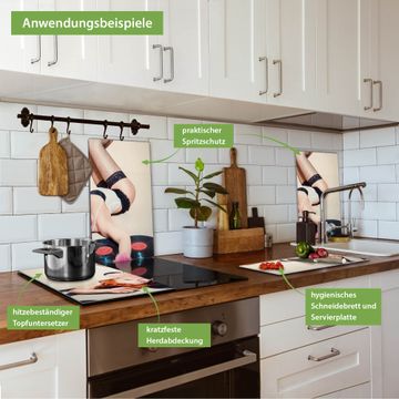 VIELSEITIG: Die Ceranfeldabdeckung ist vielseitig einsetzbar: ob als Spritzschutz hinter dem Herd für Ihre Küche oder als Glas Schneidebrett als hygienische und geruchsneutrale Unterlage. Sie können ebenfalls heiße Töpfe und Pfannen bis 100°C auf der Herdplattenabdeckung abstellen. Sie erhalten ein Multitalent für Ihre Küche. Die banjado Herdabdeckplatte aus Glas mit Motiv Hot Vinyl verdeckt mit einem schönen Motiv Ihr Ceranfeld bzw. Ihren Induktionsherd. Die Herdabdeckplatte ist vielseitig einsetzbar und passt sich dabei Ihrem Einrichtungsstil an. DESIGN: Die Herdabdeckung Hot Vinyl besteht aus hochwertigem, gehärtetem Glas mit einem unserer zahlreichen Motive. Sie haben die Wahl zwischen verschiedenen Maßen von einteiligen, zweiteiligen und einer dreiteiligen Herdabdeckung. Wählen Sie was zu Ihrer Einrichtung passt! DETAILS: Die Herdabdeckplatte ist vielseitig einsetzbar. Die Ecken sind für mehr Sicherheit dezent abgerundet, das Glas ist gehärtet. Sie erhalten separate Gummi Abstandshalter, damit Ihre Abdeckung rutschfest auf dem Herd steht. Diese können Sie frei positionieren, sodass die Herdabdeckung perfekt auf Ihrem Ceranfeld sitzt. BANJADO: Wir sind ein kleines Team aus dem Herzen von Sachsen und fertigen jeden Artikel nach Bestellung eigens für Sie an. Sie erhalten also keine preiswerte Importware, sondern Handarbeit. Auf Wunsch sind auch andere Farben und Größen möglich, kontakierten Sie uns gern.