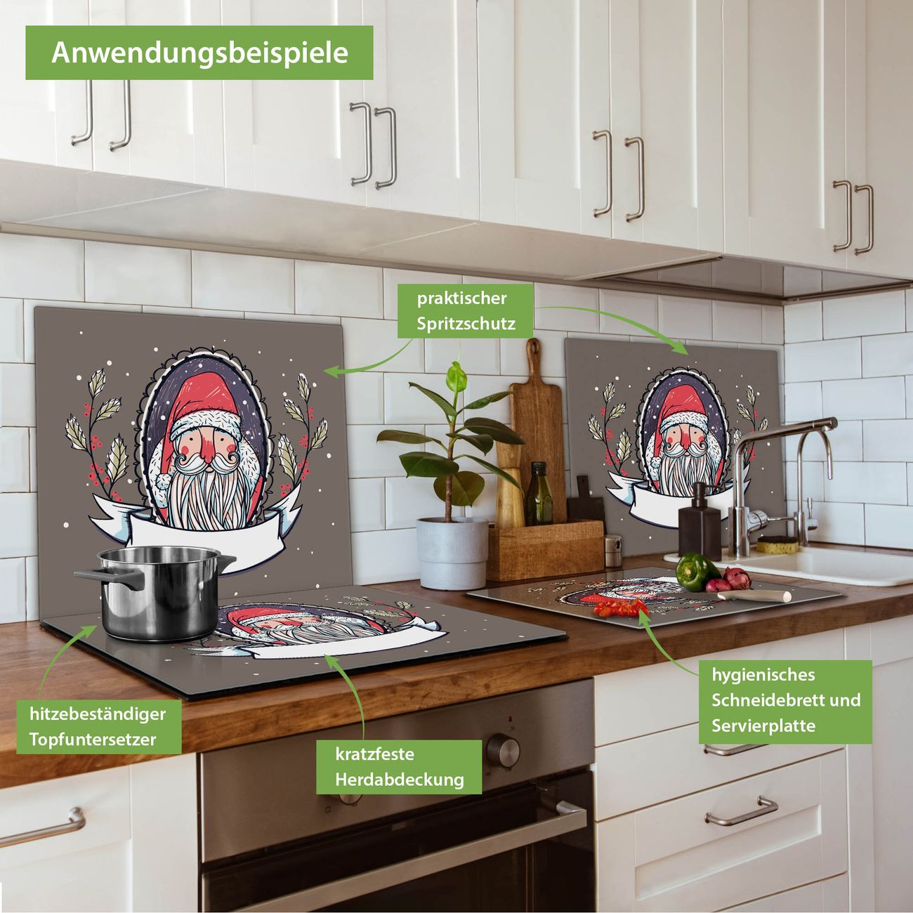 VIELSEITIG: Die Ceranfeldabdeckung ist vielseitig einsetzbar: ob als Spritzschutz hinter dem Herd für Ihre Küche oder als Glas Schneidebrett als hygienische und geruchsneutrale Unterlage. Sie können ebenfalls heiße Töpfe und Pfannen bis 100°C auf der Herdplattenabdeckung abstellen. Sie erhalten ein Multitalent für Ihre Küche. Die banjado Herdabdeckplatte aus Glas mit Motiv Merry XMAS verdeckt mit einem schönen Motiv Ihr Ceranfeld bzw. Ihren Induktionsherd. Die Herdabdeckplatte ist vielseitig einsetzbar und passt sich dabei Ihrem Einrichtungsstil an. DESIGN: Die Herdabdeckung Merry XMAS besteht aus hochwertigem, gehärtetem Glas mit einem unserer zahlreichen Motive. Sie haben die Wahl zwischen verschiedenen Maßen von einteiligen, zweiteiligen und einer dreiteiligen Herdabdeckung. Wählen Sie was zu Ihrer Einrichtung passt! DETAILS: Die Herdabdeckplatte ist vielseitig einsetzbar. Die Ecken sind für mehr Sicherheit dezent abgerundet, das Glas ist gehärtet. Sie erhalten separate Gummi Abstandshalter, damit Ihre Abdeckung rutschfest auf dem Herd steht. Diese können Sie frei positionieren, sodass die Herdabdeckung perfekt auf Ihrem Ceranfeld sitzt. BANJADO: Wir sind ein kleines Team aus dem Herzen von Sachsen und fertigen jeden Artikel nach Bestellung eigens für Sie an. Sie erhalten also keine preiswerte Importware, sondern Handarbeit. Auf Wunsch sind auch andere Farben und Größen möglich, kontakierten Sie uns gern.