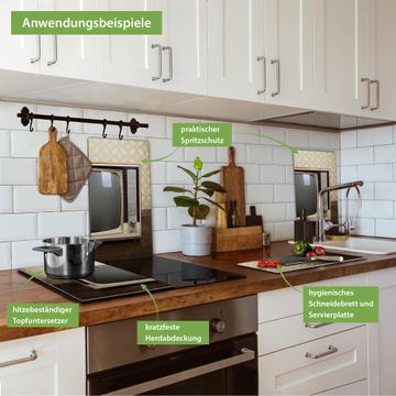 VIELSEITIG: Die Ceranfeldabdeckung ist vielseitig einsetzbar: ob als Spritzschutz hinter dem Herd für Ihre Küche oder als Glas Schneidebrett als hygienische und geruchsneutrale Unterlage. Sie können ebenfalls heiße Töpfe und Pfannen bis 100°C auf der Herdplattenabdeckung abstellen. Sie erhalten ein Multitalent für Ihre Küche. Die banjado Herdabdeckplatte aus Glas mit Motiv Schwarzweiß TV verdeckt mit einem schönen Motiv Ihr Ceranfeld bzw. Ihren Induktionsherd. Die Herdabdeckplatte ist vielseitig einsetzbar und passt sich dabei Ihrem Einrichtungsstil an. DESIGN: Die Herdabdeckung Schwarzweiß TV besteht aus hochwertigem, gehärtetem Glas mit einem unserer zahlreichen Motive. Sie haben die Wahl zwischen verschiedenen Maßen von einteiligen, zweiteiligen und einer dreiteiligen Herdabdeckung. Wählen Sie was zu Ihrer Einrichtung passt! DETAILS: Die Herdabdeckplatte ist vielseitig einsetzbar. Die Ecken sind für mehr Sicherheit dezent abgerundet, das Glas ist gehärtet. Sie erhalten separate Gummi Abstandshalter, damit Ihre Abdeckung rutschfest auf dem Herd steht. Diese können Sie frei positionieren, sodass die Herdabdeckung perfekt auf Ihrem Ceranfeld sitzt. BANJADO: Wir sind ein kleines Team aus dem Herzen von Sachsen und fertigen jeden Artikel nach Bestellung eigens für Sie an. Sie erhalten also keine preiswerte Importware, sondern Handarbeit. Auf Wunsch sind auch andere Farben und Größen möglich, kontakierten Sie uns gern.
