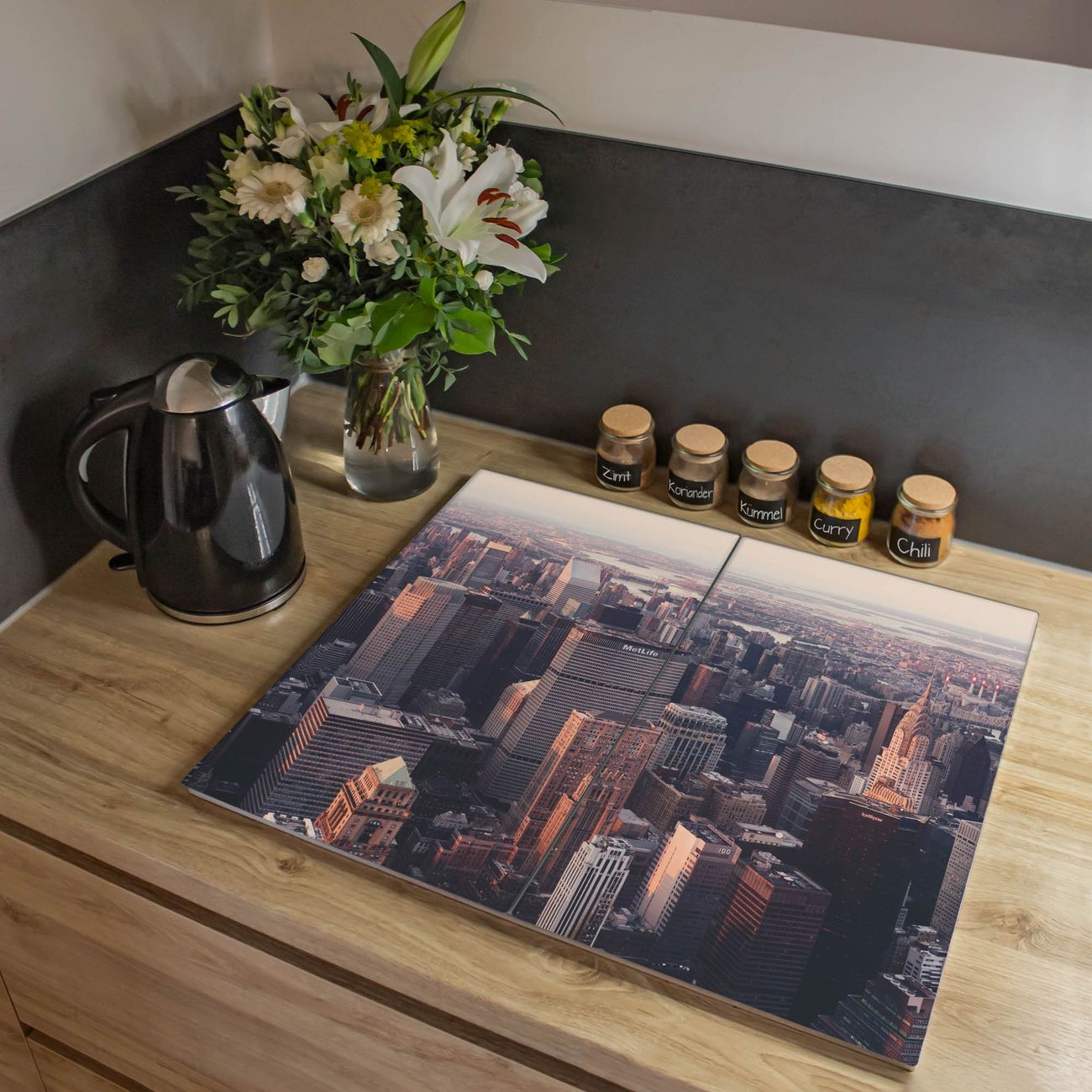VIELSEITIG: Die Ceranfeldabdeckung ist vielseitig einsetzbar: ob als Spritzschutz hinter dem Herd für Ihre Küche oder als Glas Schneidebrett als hygienische und geruchsneutrale Unterlage. Sie können ebenfalls heiße Töpfe und Pfannen bis 100°C auf der Herdplattenabdeckung abstellen. Sie erhalten ein Multitalent für Ihre Küche. Die banjado Herdabdeckplatte aus Glas mit Motiv Skyline verdeckt mit einem schönen Motiv Ihr Ceranfeld bzw. Ihren Induktionsherd. Die Herdabdeckplatte ist vielseitig einsetzbar und passt sich dabei Ihrem Einrichtungsstil an. DESIGN: Die Herdabdeckung Skyline besteht aus hochwertigem, gehärtetem Glas mit einem unserer zahlreichen Motive. Sie haben die Wahl zwischen verschiedenen Maßen von einteiligen, zweiteiligen und einer dreiteiligen Herdabdeckung. Wählen Sie was zu Ihrer Einrichtung passt! DETAILS: Die Herdabdeckplatte ist vielseitig einsetzbar. Die Ecken sind für mehr Sicherheit dezent abgerundet, das Glas ist gehärtet. Sie erhalten separate Gummi Abstandshalter, damit Ihre Abdeckung rutschfest auf dem Herd steht. Diese können Sie frei positionieren, sodass die Herdabdeckung perfekt auf Ihrem Ceranfeld sitzt. BANJADO: Wir sind ein kleines Team aus dem Herzen von Sachsen und fertigen jeden Artikel nach Bestellung eigens für Sie an. Sie erhalten also keine preiswerte Importware, sondern Handarbeit. Auf Wunsch sind auch andere Farben und Größen möglich, kontakierten Sie uns gern.