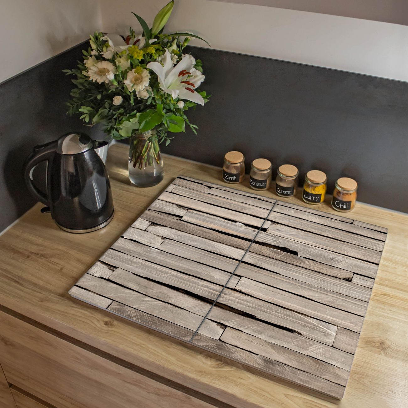 VIELSEITIG: Die Ceranfeldabdeckung ist vielseitig einsetzbar: ob als Spritzschutz hinter dem Herd für Ihre Küche oder als Glas Schneidebrett als hygienische und geruchsneutrale Unterlage. Sie können ebenfalls heiße Töpfe und Pfannen bis 100°C auf der Herdplattenabdeckung abstellen. Sie erhalten ein Multitalent für Ihre Küche. Die banjado Herdabdeckplatte aus Glas mit Motiv Steinplatten verdeckt mit einem schönen Motiv Ihr Ceranfeld bzw. Ihren Induktionsherd. Die Herdabdeckplatte ist vielseitig einsetzbar und passt sich dabei Ihrem Einrichtungsstil an. DESIGN: Die Herdabdeckung Steinplatten besteht aus hochwertigem, gehärtetem Glas mit einem unserer zahlreichen Motive. Sie haben die Wahl zwischen verschiedenen Maßen von einteiligen, zweiteiligen und einer dreiteiligen Herdabdeckung. Wählen Sie was zu Ihrer Einrichtung passt! DETAILS: Die Herdabdeckplatte ist vielseitig einsetzbar. Die Ecken sind für mehr Sicherheit dezent abgerundet, das Glas ist gehärtet. Sie erhalten separate Gummi Abstandshalter, damit Ihre Abdeckung rutschfest auf dem Herd steht. Diese können Sie frei positionieren, sodass die Herdabdeckung perfekt auf Ihrem Ceranfeld sitzt. BANJADO: Wir sind ein kleines Team aus dem Herzen von Sachsen und fertigen jeden Artikel nach Bestellung eigens für Sie an. Sie erhalten also keine preiswerte Importware, sondern Handarbeit. Auf Wunsch sind auch andere Farben und Größen möglich, kontakierten Sie uns gern.