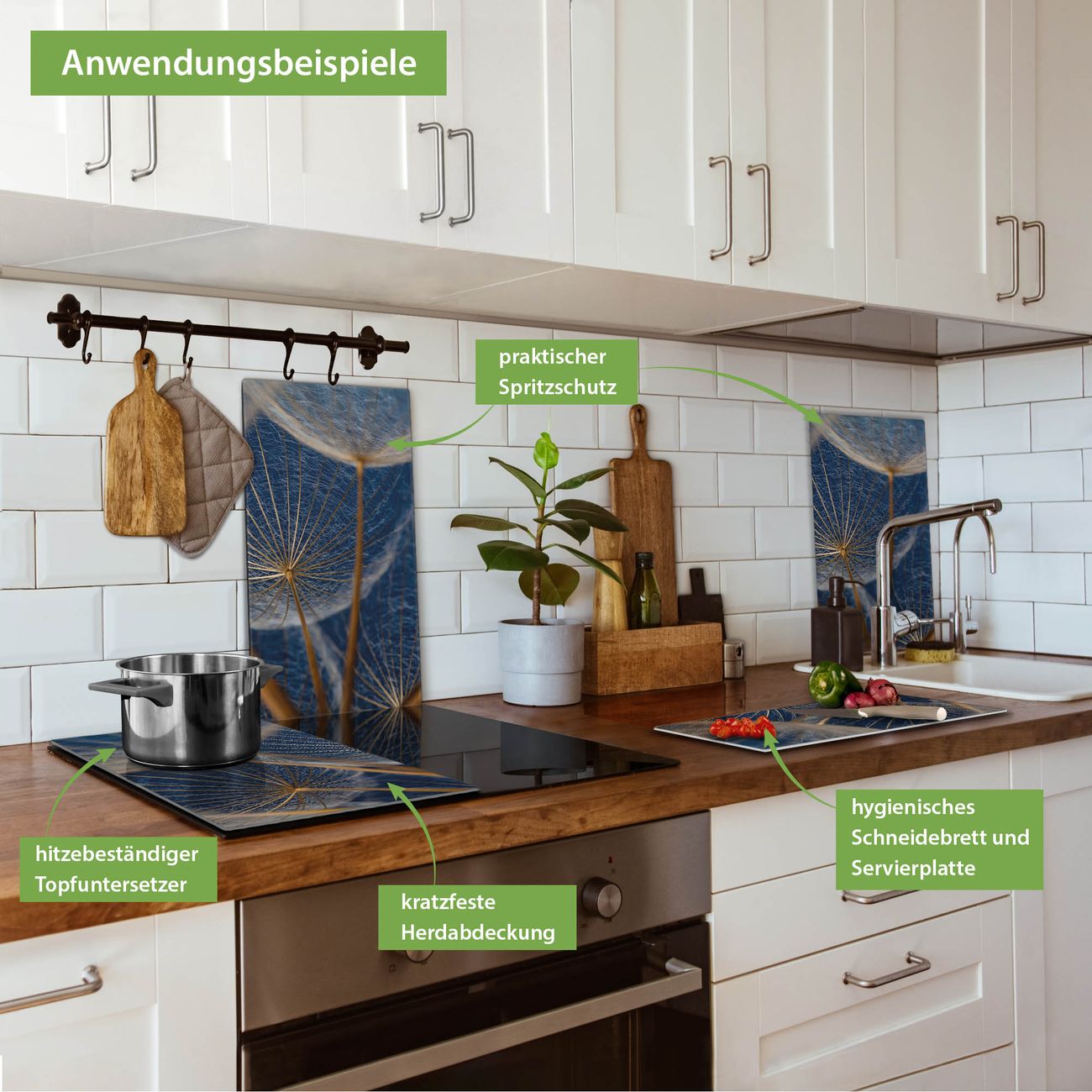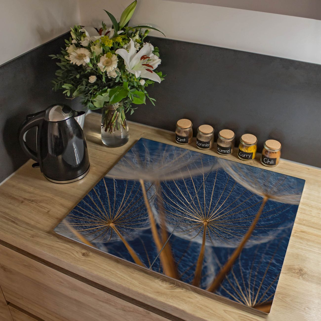 VIELSEITIG: Die Ceranfeldabdeckung ist vielseitig einsetzbar: ob als Spritzschutz hinter dem Herd für Ihre Küche oder als Glas Schneidebrett als hygienische und geruchsneutrale Unterlage. Sie können ebenfalls heiße Töpfe und Pfannen bis 100°C auf der Herdplattenabdeckung abstellen. Sie erhalten ein Multitalent für Ihre Küche. Die banjado Herdabdeckplatte aus Glas mit Motiv Verblüht verdeckt mit einem schönen Motiv Ihr Ceranfeld bzw. Ihren Induktionsherd. Die Herdabdeckplatte ist vielseitig einsetzbar und passt sich dabei Ihrem Einrichtungsstil an. DESIGN: Die Herdabdeckung Verblüht besteht aus hochwertigem, gehärtetem Glas mit einem unserer zahlreichen Motive. Sie haben die Wahl zwischen verschiedenen Maßen von einteiligen, zweiteiligen und einer dreiteiligen Herdabdeckung. Wählen Sie was zu Ihrer Einrichtung passt! DETAILS: Die Herdabdeckplatte ist vielseitig einsetzbar. Die Ecken sind für mehr Sicherheit dezent abgerundet, das Glas ist gehärtet. Sie erhalten separate Gummi Abstandshalter, damit Ihre Abdeckung rutschfest auf dem Herd steht. Diese können Sie frei positionieren, sodass die Herdabdeckung perfekt auf Ihrem Ceranfeld sitzt. BANJADO: Wir sind ein kleines Team aus dem Herzen von Sachsen und fertigen jeden Artikel nach Bestellung eigens für Sie an. Sie erhalten also keine preiswerte Importware, sondern Handarbeit. Auf Wunsch sind auch andere Farben und Größen möglich, kontakierten Sie uns gern.