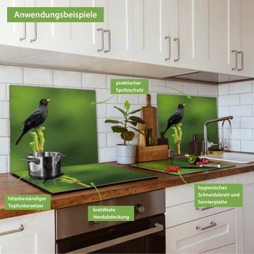 VIELSEITIG: Die Ceranfeldabdeckung ist vielseitig einsetzbar: ob als Spritzschutz hinter dem Herd für Ihre Küche oder als Glas Schneidebrett als hygienische und geruchsneutrale Unterlage. Sie können ebenfalls heiße Töpfe und Pfannen bis 100°C auf der Herdplattenabdeckung abstellen. Sie erhalten ein Multitalent für Ihre Küche. Die banjado Herdabdeckplatte aus Glas mit Motiv Vogel auf Tannenzweig verdeckt mit einem schönen Motiv Ihr Ceranfeld bzw. Ihren Induktionsherd. Die Herdabdeckplatte ist vielseitig einsetzbar und passt sich dabei Ihrem Einrichtungsstil an. DESIGN: Die Herdabdeckung Vogel auf Tannenzweig besteht aus hochwertigem, gehärtetem Glas mit einem unserer zahlreichen Motive. Sie haben die Wahl zwischen verschiedenen Maßen von einteiligen, zweiteiligen und einer dreiteiligen Herdabdeckung. Wählen Sie was zu Ihrer Einrichtung passt! DETAILS: Die Herdabdeckplatte ist vielseitig einsetzbar. Die Ecken sind für mehr Sicherheit dezent abgerundet, das Glas ist gehärtet. Sie erhalten separate Gummi Abstandshalter, damit Ihre Abdeckung rutschfest auf dem Herd steht. Diese können Sie frei positionieren, sodass die Herdabdeckung perfekt auf Ihrem Ceranfeld sitzt. BANJADO: Wir sind ein kleines Team aus dem Herzen von Sachsen und fertigen jeden Artikel nach Bestellung eigens für Sie an. Sie erhalten also keine preiswerte Importware, sondern Handarbeit. Auf Wunsch sind auch andere Farben und Größen möglich, kontakierten Sie uns gern.