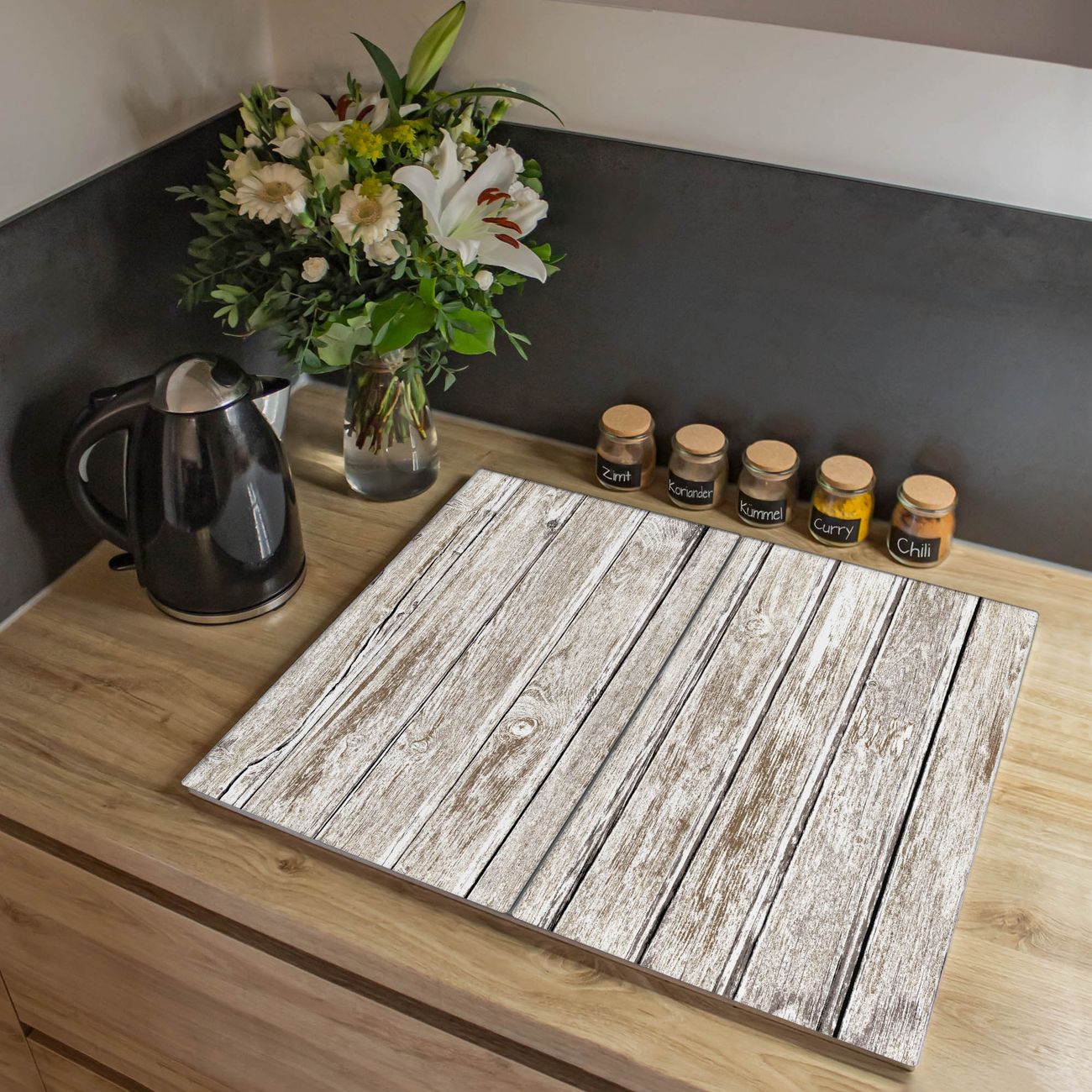 Herdabdeckplatte 1, 2 und 3 teilig Motiv Weißes Holz