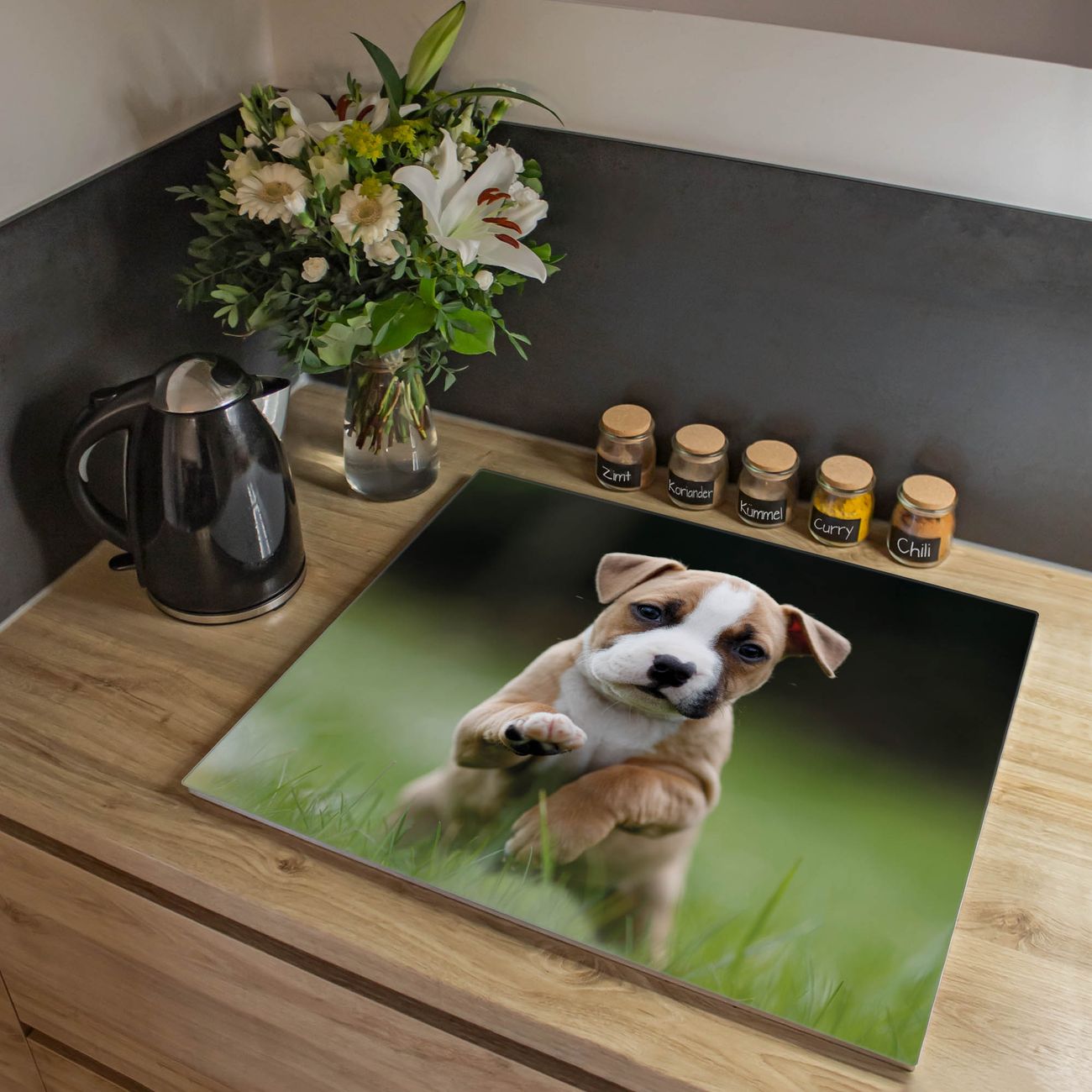 Herdabdeckplatte 1, 2 und 3 teilig Motiv Welpe im Gras