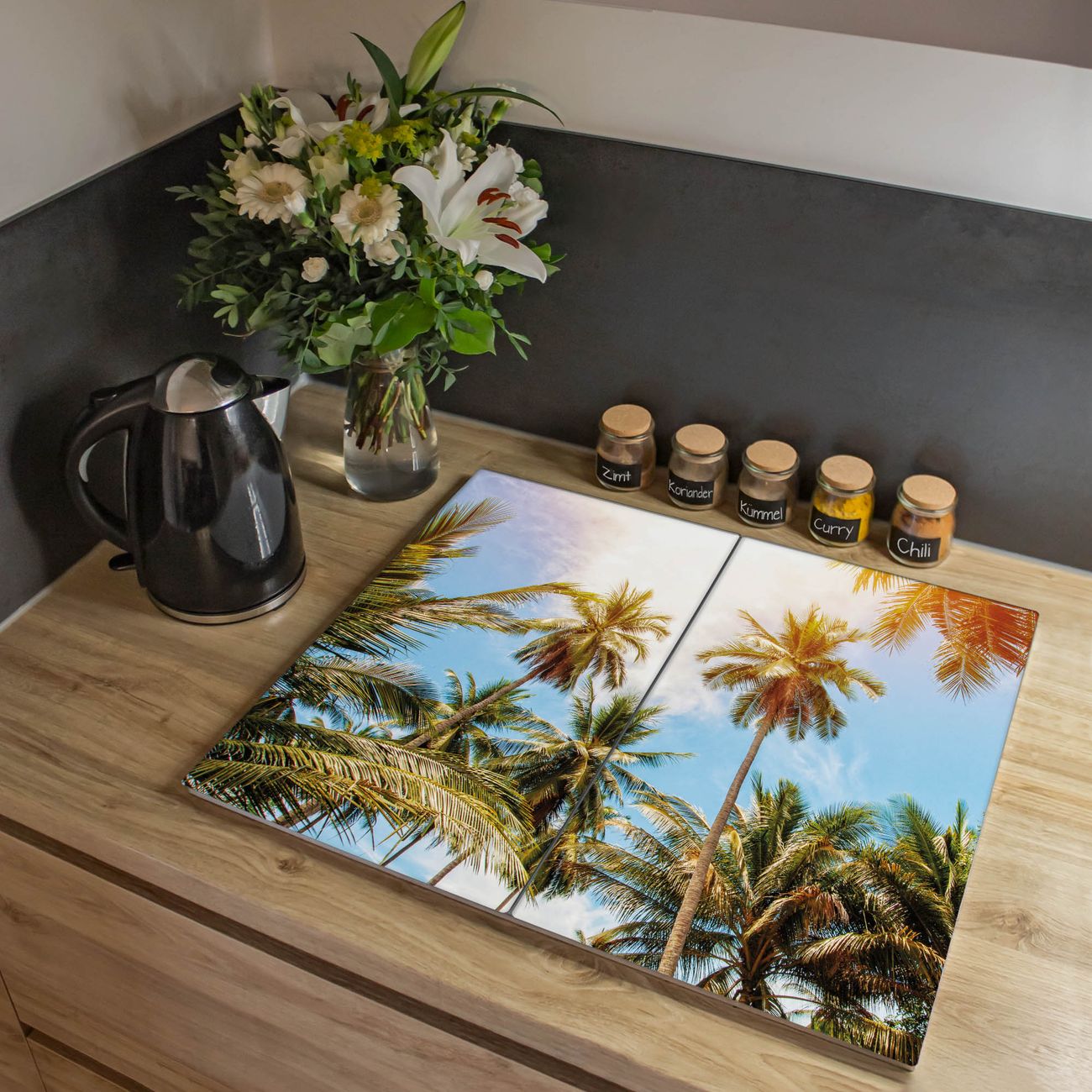 Herdabdeckplatte 1, 2 und 3 teilig Motiv Zwischen Palmen