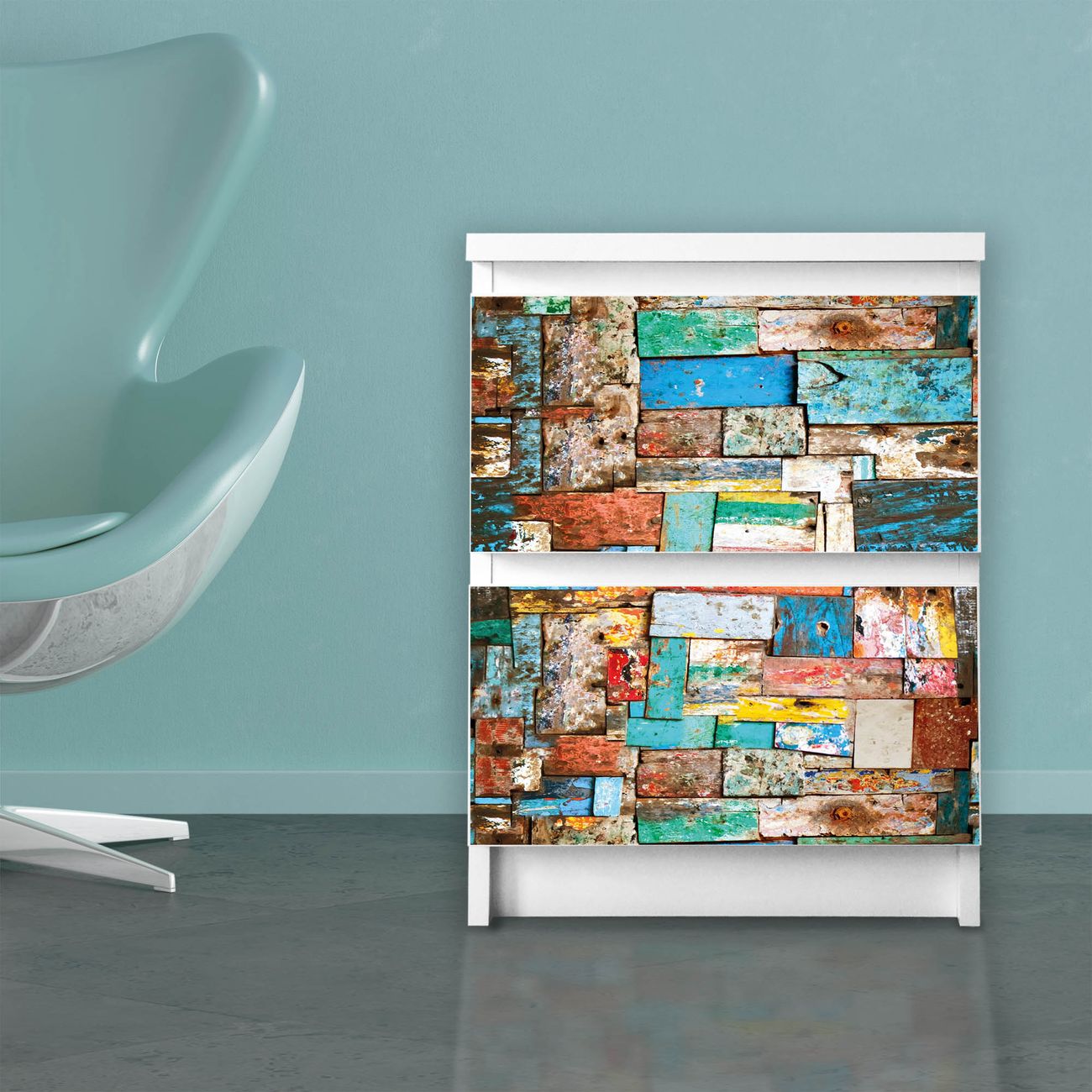 Möbelsticker für Ikea MALM Motiv Bunte Holzschindeln