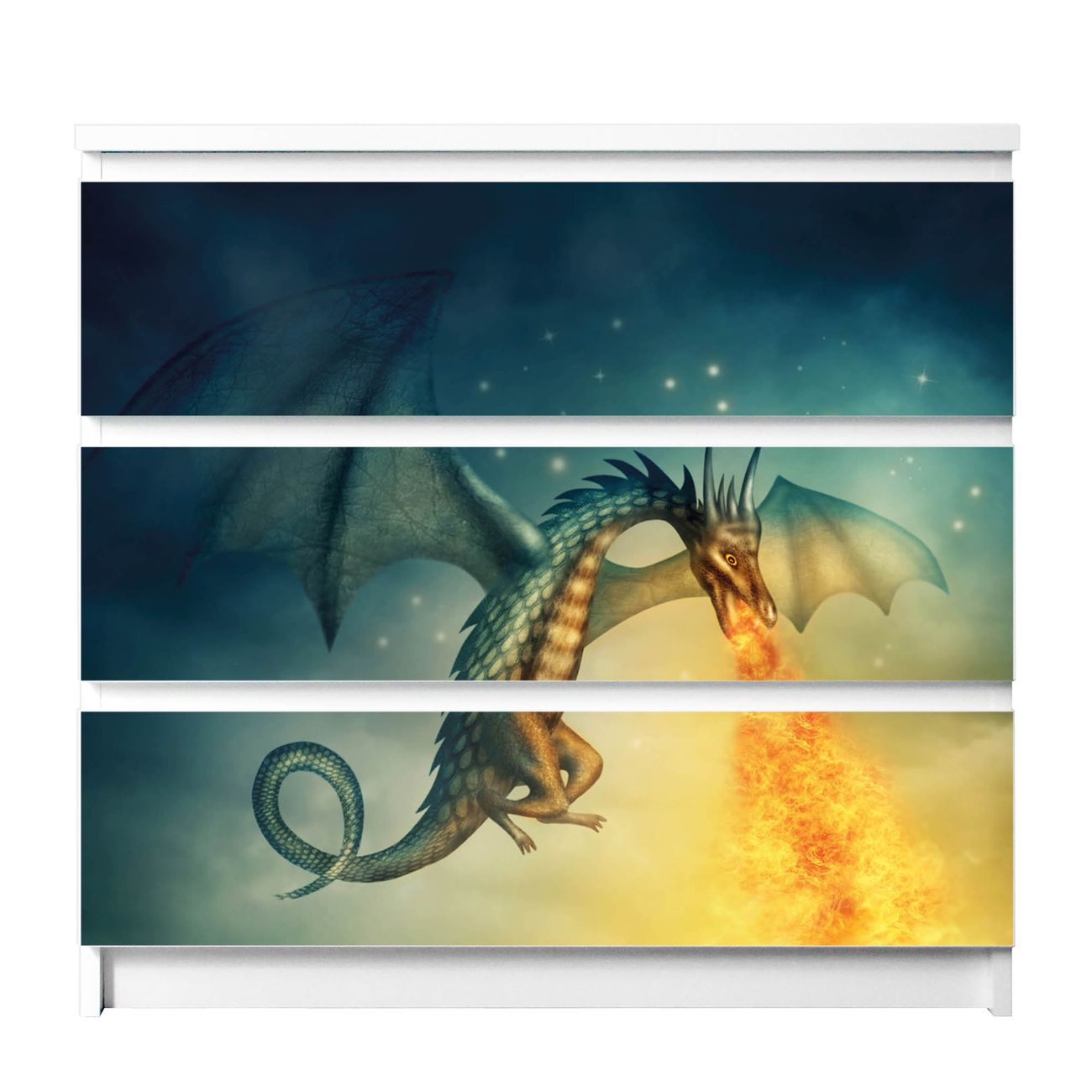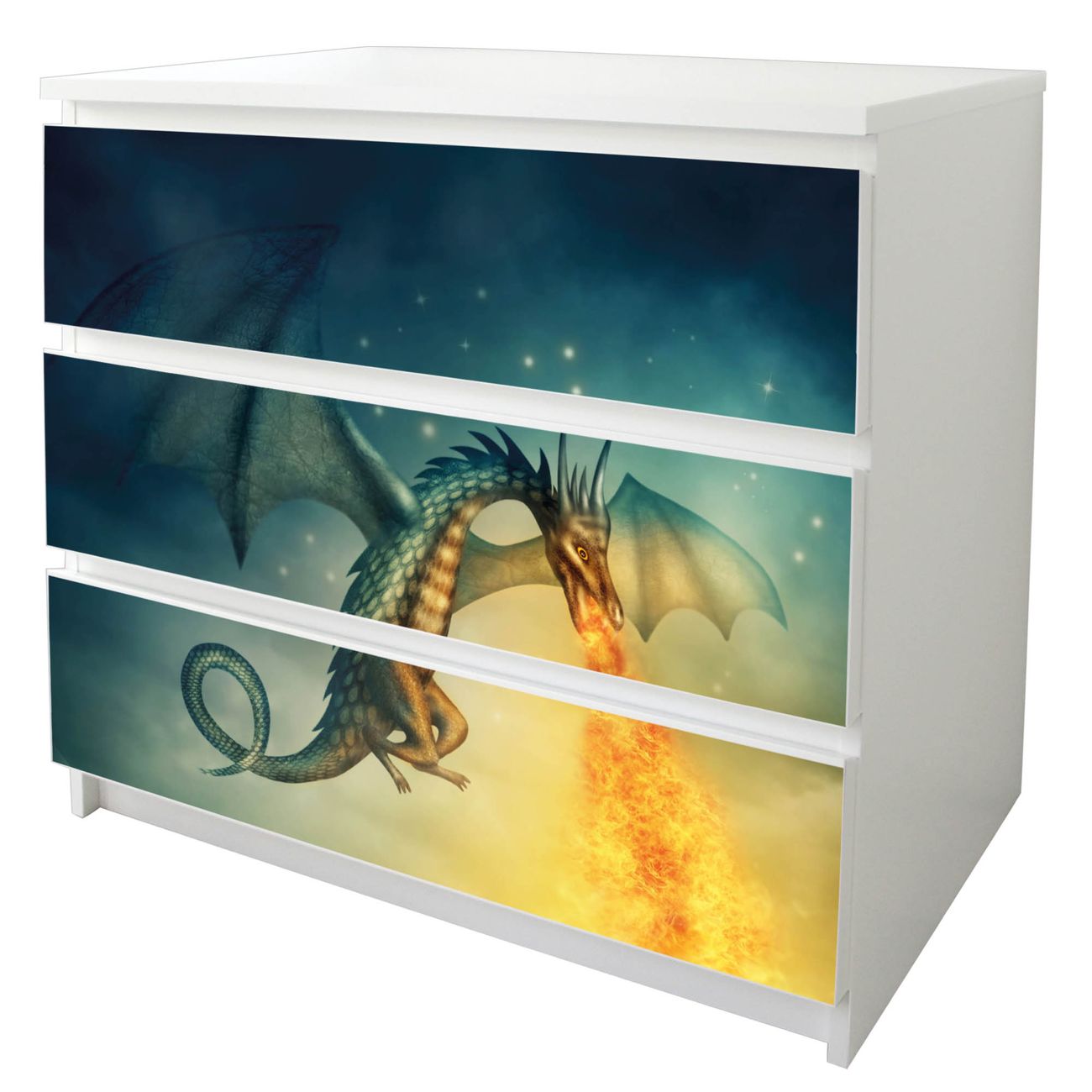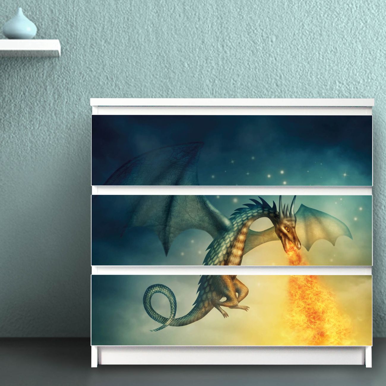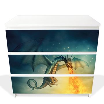 FUNKTION: Die banjado Möbelfolie mit Motiv Motiv Drachen zaubert im Handumdrehen aus Ihrer Ikea MALM Kommode ein individuell gestaltetes Unikat. Verziert mit einem traumhaften Motiv verbindet die Malm Kommode jede Menge Stauraum mit ansprechendem Design. Die gezeigte IKEA Malm Komode ist nicht im Angebot enthalten. DESIGN: Die banjado Klebefolie gestaltet Ihr Ikea Möbelstück völlig neu. So passt sich die Malm Kommode verschiedenen Einrichtungsstilen an. Lassen Sie Ihrer Kreativität freien Raum, wir helfen Ihnen bei der Umsetzung. Egal ob 2, 3, 4 oder 6 Schubkästen, wählen Sie einfach Ihre passende Variante. DETAILS: Der banjado Motiv Drachen Möbelsticker ist selbstklebend und wird Ihnen bereits fertig zugeschnitten geliefert. Sie können Schritt für Schritt jede Schublade einzeln bekleben, eine detaillierte Verklebeanleitung liegt selbstverständlich bei. Die Folie ist mit einem zusätzlichen Laminat überzogen, dass Ihr Möbelstück zusätzlich vor Kratzern schützt. NUTZEN: Sie können die banjado Möbelfolie wunderbar nutzen, um abgeplatzte, schmutzige oder unschöne Stellen an Ihrer Malm Kommode zu überdecken. Mit einem wechselnden Design können Sie Ihren Einrichtungsstil ändern oder aus einer Flurkommode eine Kinderkommode gestalten. Alle verwendeten Farben sind lösungsmittelfrei. BANJADO: Ihre Design Folie wird in Sachsen in einer kleinen Manufaktur angefertigt und verpackt. Wir legen großen Wert auf die Verbindung von Funktionalität und Design.