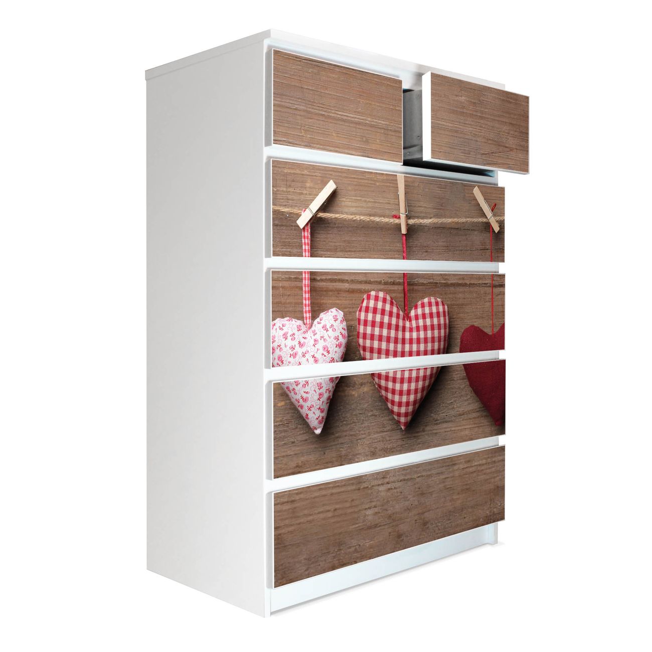 FUNKTION: Die banjado Möbelfolie mit Motiv Motiv Herzen zaubert im Handumdrehen aus Ihrer Ikea MALM Kommode ein individuell gestaltetes Unikat. Verziert mit einem traumhaften Motiv verbindet die Malm Kommode jede Menge Stauraum mit ansprechendem Design. Die gezeigte IKEA Malm Komode ist nicht im Angebot enthalten. DESIGN: Die banjado Klebefolie gestaltet Ihr Ikea Möbelstück völlig neu. So passt sich die Malm Kommode verschiedenen Einrichtungsstilen an. Lassen Sie Ihrer Kreativität freien Raum, wir helfen Ihnen bei der Umsetzung. Egal ob 2, 3, 4 oder 6 Schubkästen, wählen Sie einfach Ihre passende Variante. DETAILS: Der banjado Motiv Herzen Möbelsticker ist selbstklebend und wird Ihnen bereits fertig zugeschnitten geliefert. Sie können Schritt für Schritt jede Schublade einzeln bekleben, eine detaillierte Verklebeanleitung liegt selbstverständlich bei. Die Folie ist mit einem zusätzlichen Laminat überzogen, dass Ihr Möbelstück zusätzlich vor Kratzern schützt. NUTZEN: Sie können die banjado Möbelfolie wunderbar nutzen, um abgeplatzte, schmutzige oder unschöne Stellen an Ihrer Malm Kommode zu überdecken. Mit einem wechselnden Design können Sie Ihren Einrichtungsstil ändern oder aus einer Flurkommode eine Kinderkommode gestalten. Alle verwendeten Farben sind lösungsmittelfrei. BANJADO: Ihre Design Folie wird in Sachsen in einer kleinen Manufaktur angefertigt und verpackt. Wir legen großen Wert auf die Verbindung von Funktionalität und Design.