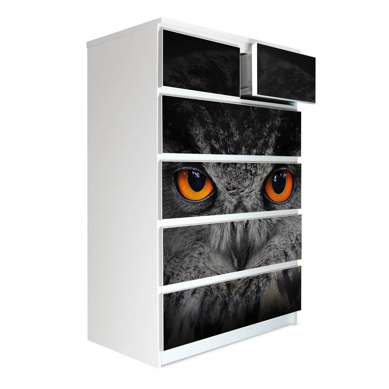 FUNKTION: Die banjado Möbelfolie mit Motiv Motiv Uhu zaubert im Handumdrehen aus Ihrer Ikea MALM Kommode ein individuell gestaltetes Unikat. Verziert mit einem traumhaften Motiv verbindet die Malm Kommode jede Menge Stauraum mit ansprechendem Design. Die gezeigte IKEA Malm Komode ist nicht im Angebot enthalten. DESIGN: Die banjado Klebefolie gestaltet Ihr Ikea Möbelstück völlig neu. So passt sich die Malm Kommode verschiedenen Einrichtungsstilen an. Lassen Sie Ihrer Kreativität freien Raum, wir helfen Ihnen bei der Umsetzung. Egal ob 2, 3, 4 oder 6 Schubkästen, wählen Sie einfach Ihre passende Variante. DETAILS: Der banjado Motiv Uhu Möbelsticker ist selbstklebend und wird Ihnen bereits fertig zugeschnitten geliefert. Sie können Schritt für Schritt jede Schublade einzeln bekleben, eine detaillierte Verklebeanleitung liegt selbstverständlich bei. Die Folie ist mit einem zusätzlichen Laminat überzogen, dass Ihr Möbelstück zusätzlich vor Kratzern schützt. NUTZEN: Sie können die banjado Möbelfolie wunderbar nutzen, um abgeplatzte, schmutzige oder unschöne Stellen an Ihrer Malm Kommode zu überdecken. Mit einem wechselnden Design können Sie Ihren Einrichtungsstil ändern oder aus einer Flurkommode eine Kinderkommode gestalten. Alle verwendeten Farben sind lösungsmittelfrei. BANJADO: Ihre Design Folie wird in Sachsen in einer kleinen Manufaktur angefertigt und verpackt. Wir legen großen Wert auf die Verbindung von Funktionalität und Design.