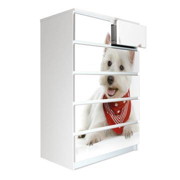 FUNKTION: Die banjado Möbelfolie mit Motiv Motiv Westie zaubert im Handumdrehen aus Ihrer Ikea MALM Kommode ein individuell gestaltetes Unikat. Verziert mit einem traumhaften Motiv verbindet die Malm Kommode jede Menge Stauraum mit ansprechendem Design. Die gezeigte IKEA Malm Komode ist nicht im Angebot enthalten. DESIGN: Die banjado Klebefolie gestaltet Ihr Ikea Möbelstück völlig neu. So passt sich die Malm Kommode verschiedenen Einrichtungsstilen an. Lassen Sie Ihrer Kreativität freien Raum, wir helfen Ihnen bei der Umsetzung. Egal ob 2, 3, 4 oder 6 Schubkästen, wählen Sie einfach Ihre passende Variante. DETAILS: Der banjado Motiv Westie Möbelsticker ist selbstklebend und wird Ihnen bereits fertig zugeschnitten geliefert. Sie können Schritt für Schritt jede Schublade einzeln bekleben, eine detaillierte Verklebeanleitung liegt selbstverständlich bei. Die Folie ist mit einem zusätzlichen Laminat überzogen, dass Ihr Möbelstück zusätzlich vor Kratzern schützt. NUTZEN: Sie können die banjado Möbelfolie wunderbar nutzen, um abgeplatzte, schmutzige oder unschöne Stellen an Ihrer Malm Kommode zu überdecken. Mit einem wechselnden Design können Sie Ihren Einrichtungsstil ändern oder aus einer Flurkommode eine Kinderkommode gestalten. Alle verwendeten Farben sind lösungsmittelfrei. BANJADO: Ihre Design Folie wird in Sachsen in einer kleinen Manufaktur angefertigt und verpackt. Wir legen großen Wert auf die Verbindung von Funktionalität und Design.