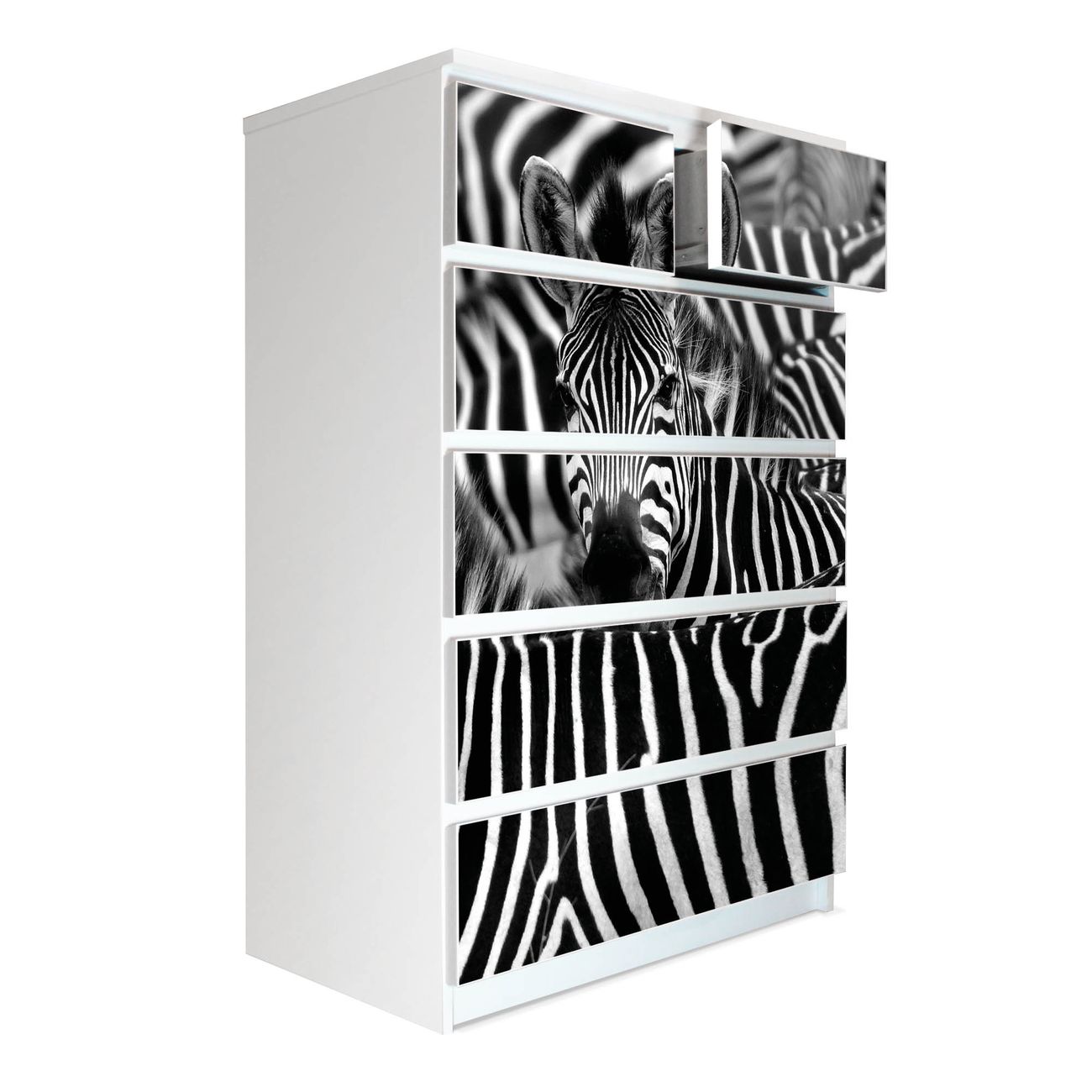 FUNKTION: Die banjado Möbelfolie mit Motiv Motiv Zebras zaubert im Handumdrehen aus Ihrer Ikea MALM Kommode ein individuell gestaltetes Unikat. Verziert mit einem traumhaften Motiv verbindet die Malm Kommode jede Menge Stauraum mit ansprechendem Design. Die gezeigte IKEA Malm Komode ist nicht im Angebot enthalten. DESIGN: Die banjado Klebefolie gestaltet Ihr Ikea Möbelstück völlig neu. So passt sich die Malm Kommode verschiedenen Einrichtungsstilen an. Lassen Sie Ihrer Kreativität freien Raum, wir helfen Ihnen bei der Umsetzung. Egal ob 2, 3, 4 oder 6 Schubkästen, wählen Sie einfach Ihre passende Variante. DETAILS: Der banjado Motiv Zebras Möbelsticker ist selbstklebend und wird Ihnen bereits fertig zugeschnitten geliefert. Sie können Schritt für Schritt jede Schublade einzeln bekleben, eine detaillierte Verklebeanleitung liegt selbstverständlich bei. Die Folie ist mit einem zusätzlichen Laminat überzogen, dass Ihr Möbelstück zusätzlich vor Kratzern schützt. NUTZEN: Sie können die banjado Möbelfolie wunderbar nutzen, um abgeplatzte, schmutzige oder unschöne Stellen an Ihrer Malm Kommode zu überdecken. Mit einem wechselnden Design können Sie Ihren Einrichtungsstil ändern oder aus einer Flurkommode eine Kinderkommode gestalten. Alle verwendeten Farben sind lösungsmittelfrei. BANJADO: Ihre Design Folie wird in Sachsen in einer kleinen Manufaktur angefertigt und verpackt. Wir legen großen Wert auf die Verbindung von Funktionalität und Design.