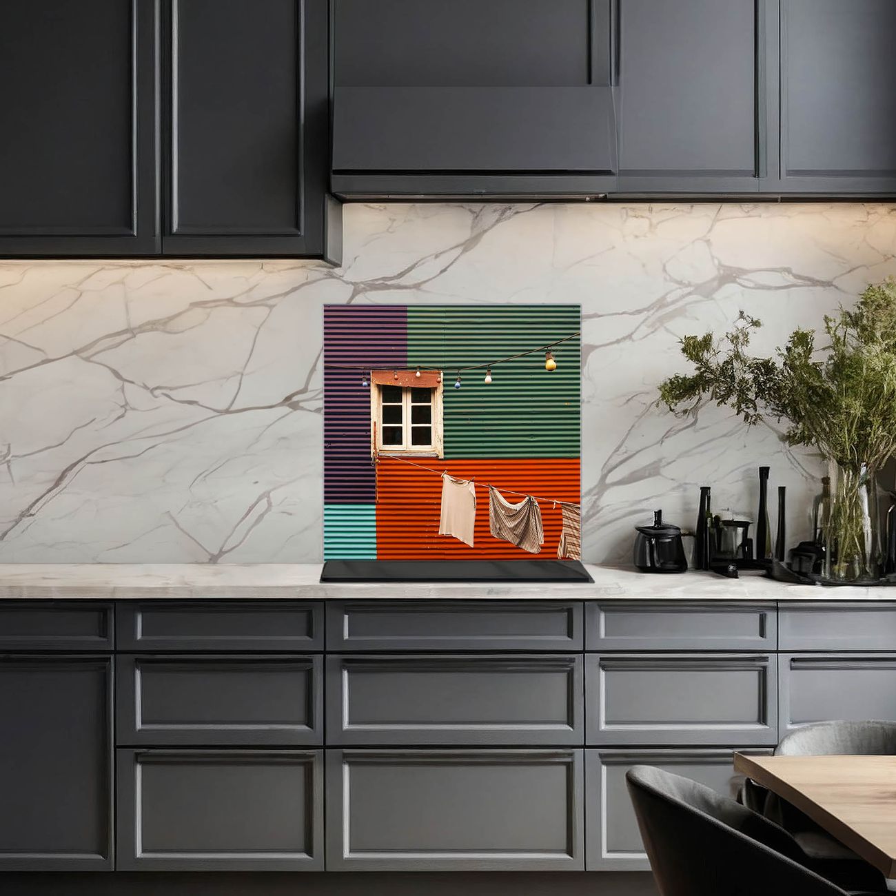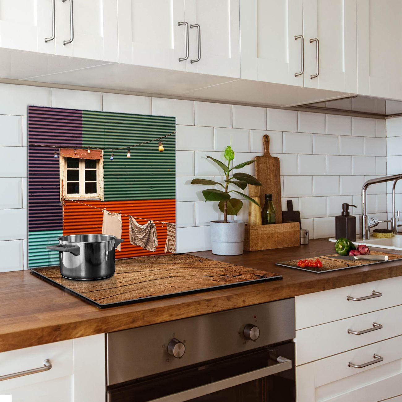 Küchenrückwand Glas Motiv Buntes Haus