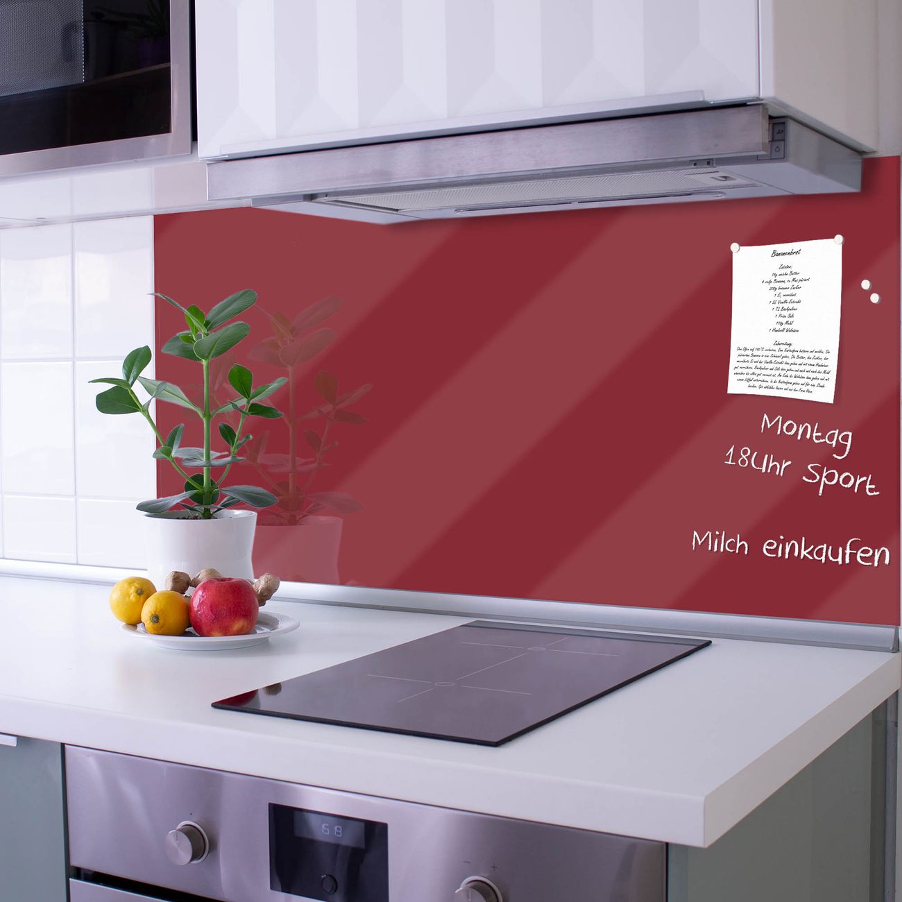 Die banjado Glas Küchenrückwand in verschiedenen Größen mit Farbe Burgund schützt Ihre Küchenfliesen vor Fettspritzern oder Wasserflecken. Der Spritzschutz ist gleichzeitig magnetisch und hält Ihre Rezepte oder Einkaufslisten. 4 Neodym-Magnete und 1 Kreidestift liegen bereits bei. Leuchtende Farbee und hochwertiges Material machen den Spritzschutz zum Designobjekt. Das dekorative Glasbild gibt Ihrer Küche ein individuelles Erscheinungsbild. Abgerundete Kanten und Sicherheitsglas sorgen für einen sicheren Einsatz.
