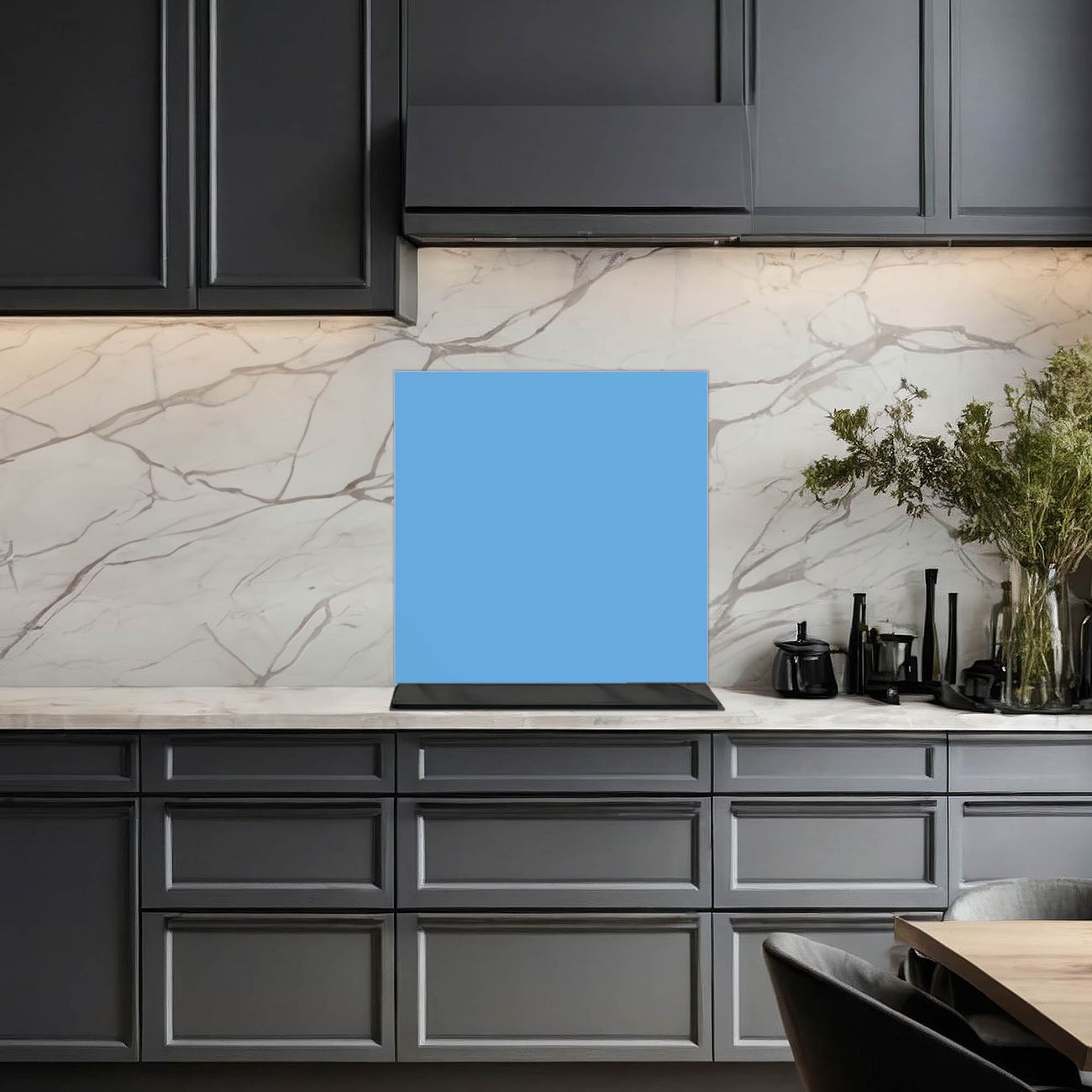 Die Küchenrückwand ist eine elegante Mehrzwecktafel: als Spritzschutz hinter Herd oder Waschbecken, hält Notizen wie ein Memoboard, ist beschreibbar mit Kreidestiften oder Whiteboard-Markern, sieht umwerfend als Glasbild aus. Sie besteht aus gehärtetem Glas, die Rückwand aus einem magnetischen Stahlblech. Durch die superflache Bauweise haben Sie die Wahl aus einer Vielzahl von Befestigungsmöglichkeiten. Sie können die Küchenrückwand mit einem Montagekleber superflach an die Wand kleben oder Sie wählen eines unserer passenden Befestigungssets, welches eine optimale Montage garantiert. Die Küchenrückwand besteht aus zertifiziertem Sicherheitsglas. Durch die mitgelieferten 4 Neodym-Magnete ist Ihre Glas Magnettafel sofort einsatzbereit.