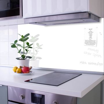 Die banjado Glas Küchenrückwand in verschiedenen Größen mit Farbe weiß schützt Ihre Küchenfliesen vor Fettspritzern oder Wasserflecken. Der Spritzschutz ist gleichzeitig magnetisch und hält Ihre Rezepte oder Einkaufslisten. 4 Neodym-Magnete und 1 Kreidestift liegen bereits bei. Leuchtende Farbee und hochwertiges Material machen den Spritzschutz zum Designobjekt. Das dekorative Glasbild gibt Ihrer Küche ein individuelles Erscheinungsbild. Abgerundete Kanten und Sicherheitsglas sorgen für einen sicheren Einsatz.