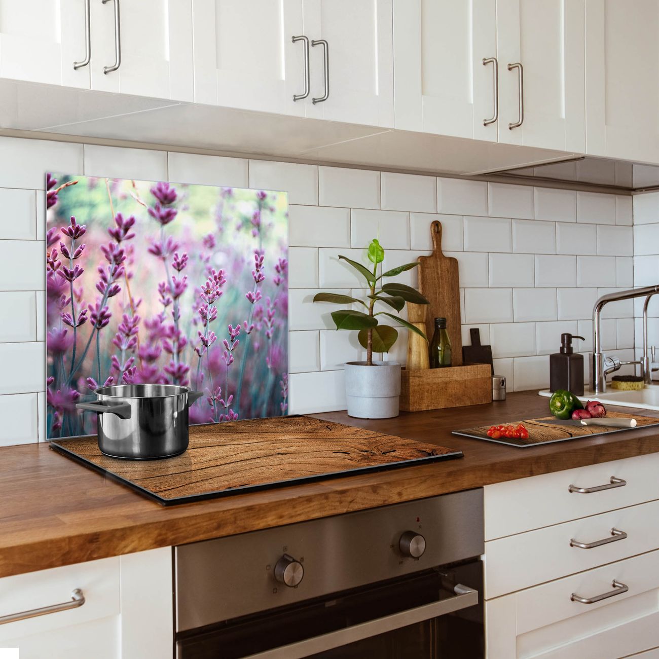 Die banjado Glas Küchenrückwand in verschiedenen Größen mit Motiv Lavendel 2 schützt Ihre Küchenfliesen vor Fettspritzern oder Wasserflecken. Der Spritzschutz ist gleichzeitig magnetisch und hält Ihre Rezepte oder Einkaufslisten. 4 Neodym-Magnete und 1 Kreidestift liegen bereits bei. Leuchtende Motive und hochwertiges Material machen den Spritzschutz zum Designobjekt. Das dekorative Glasbild gibt Ihrer Küche ein individuelles Erscheinungsbild. Abgerundete Kanten und Sicherheitsglas sorgen für einen sicheren Einsatz.