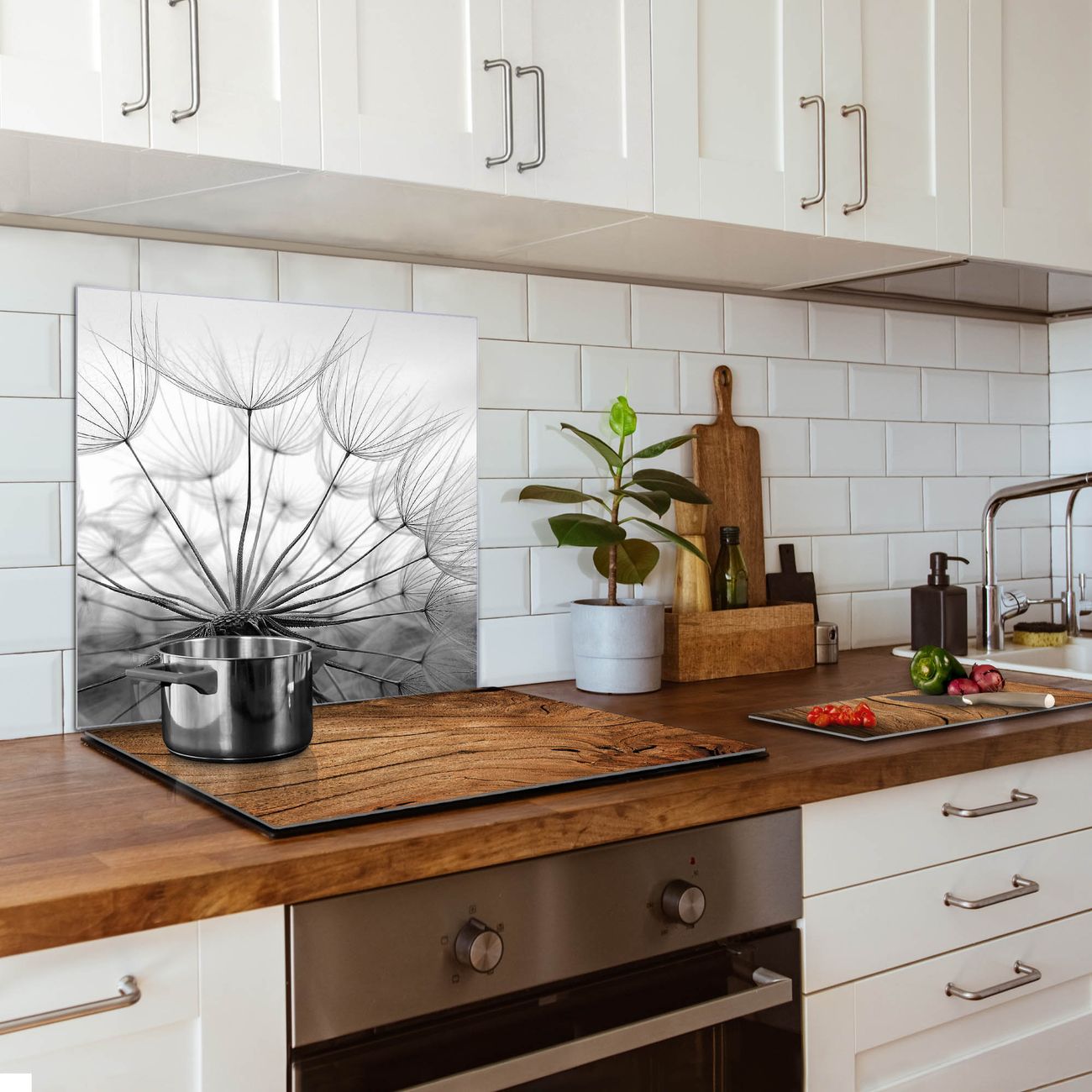 Die Küchenrückwand ist eine elegante Mehrzwecktafel: als Spritzschutz hinter Herd oder Waschbecken, hält Notizen wie ein Memoboard, ist beschreibbar mit Kreidestiften oder Whiteboard-Markern, sieht umwerfend als Glasbild aus. Sie besteht aus gehärtetem Glas, die Rückwand aus einem magnetischen Stahlblech. Durch die superflache Bauweise haben Sie die Wahl aus einer Vielzahl von Befestigungsmöglichkeiten. Sie können die Küchenrückwand mit einem Montagekleber superflach an die Wand kleben oder Sie wählen eines unserer passenden Befestigungssets, welches eine optimale Montage garantiert. Die Küchenrückwand besteht aus zertifiziertem Sicherheitsglas. Durch die mitgelieferten 4 Neodym-Magnete ist Ihre Glas Magnettafel sofort einsatzbereit.
