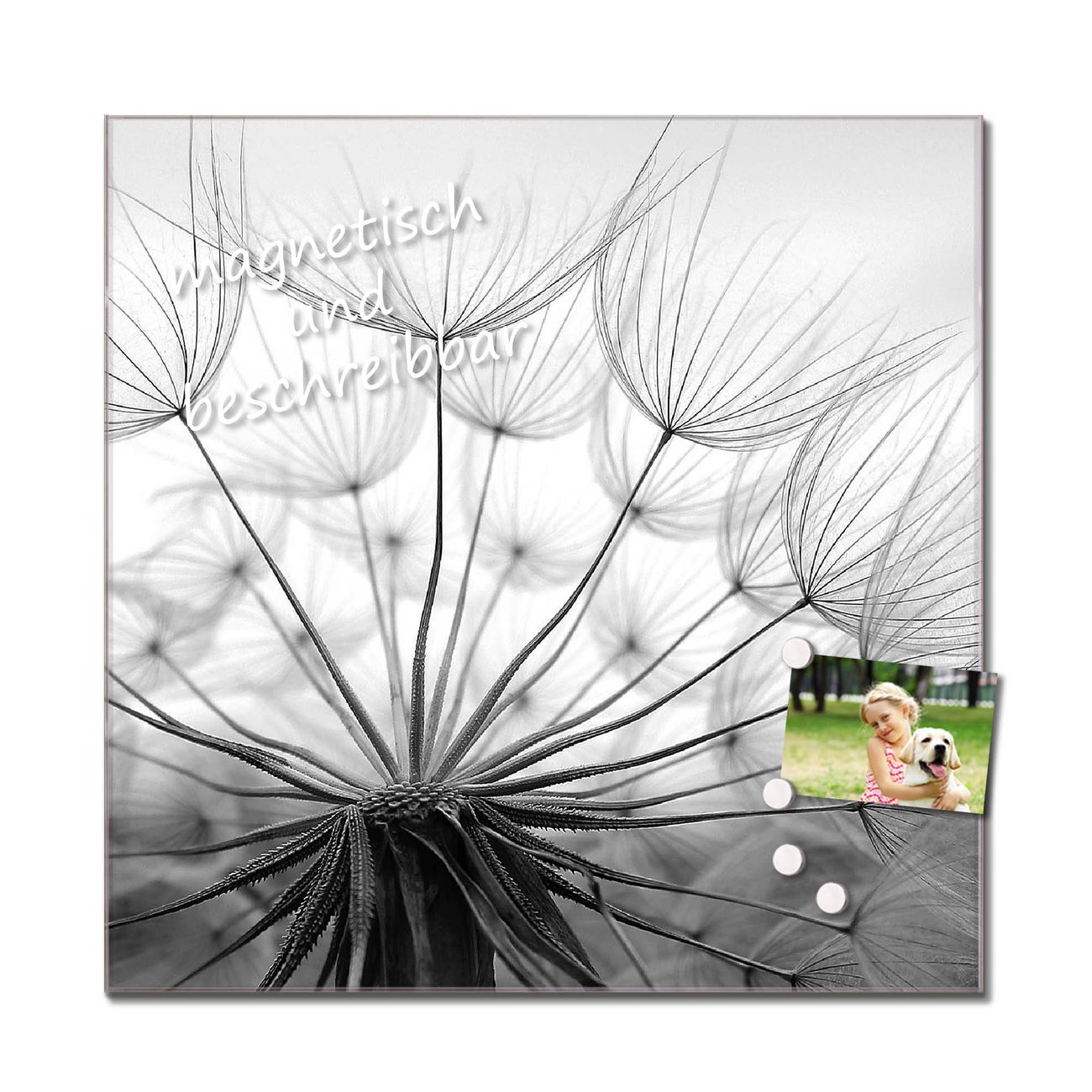 Bitte beachten Sie, dass ausschließlich spezielle Magnete an der Glastafel haften! Wir empfehlen banjado Neodym Magnete, diese sind durch uns auf Wirksamkeit geprüft.