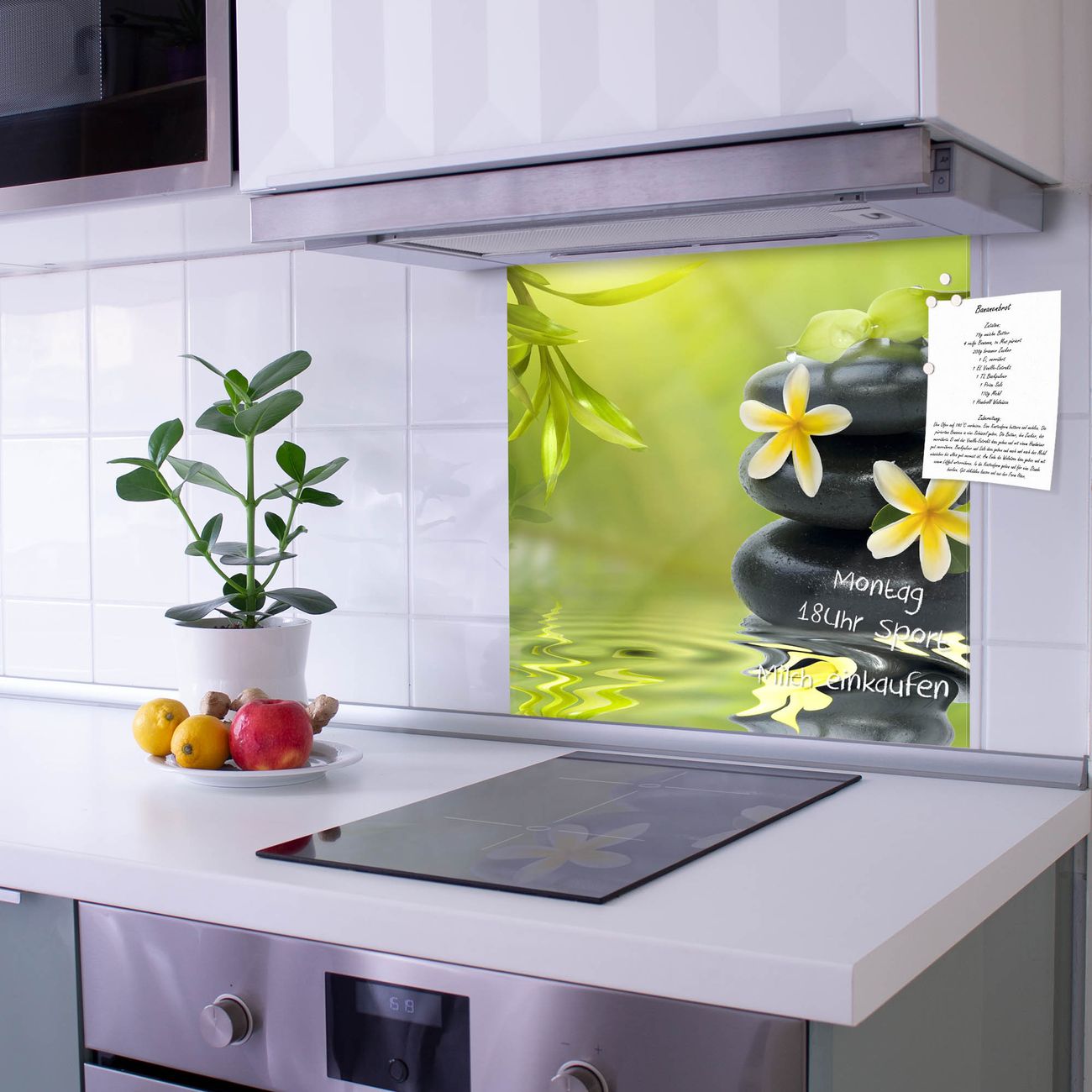 Die banjado Glas Küchenrückwand in verschiedenen Größen mit Motiv Steine & Relax 4 schützt Ihre Küchenfliesen vor Fettspritzern oder Wasserflecken. Der Spritzschutz ist gleichzeitig magnetisch und hält Ihre Rezepte oder Einkaufslisten. 4 Neodym-Magnete und 1 Kreidestift liegen bereits bei. Leuchtende Motive und hochwertiges Material machen den Spritzschutz zum Designobjekt. Das dekorative Glasbild gibt Ihrer Küche ein individuelles Erscheinungsbild. Abgerundete Kanten und Sicherheitsglas sorgen für einen sicheren Einsatz.
